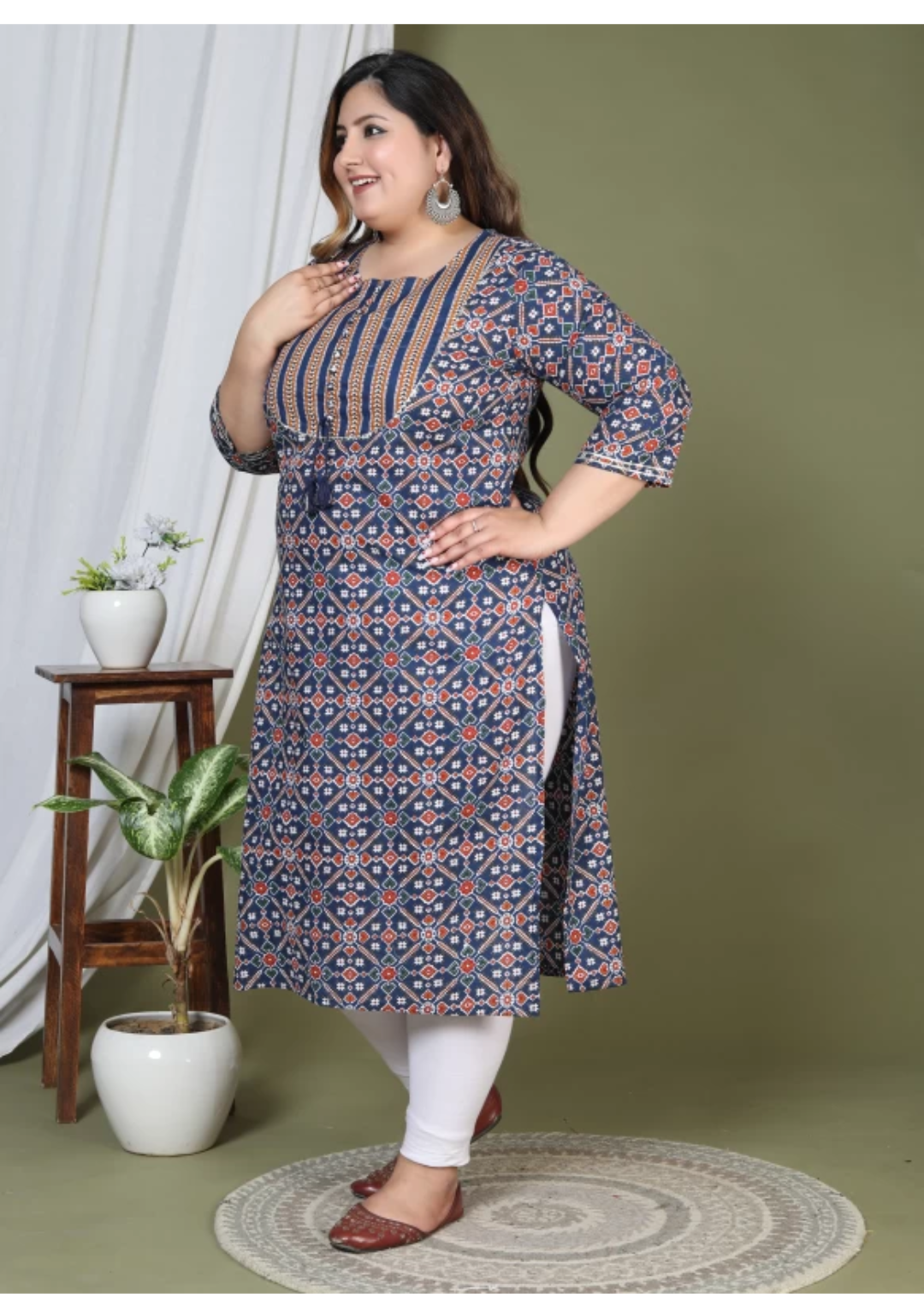 Women Printed Cotton Straight Kurta (100018-Blue)