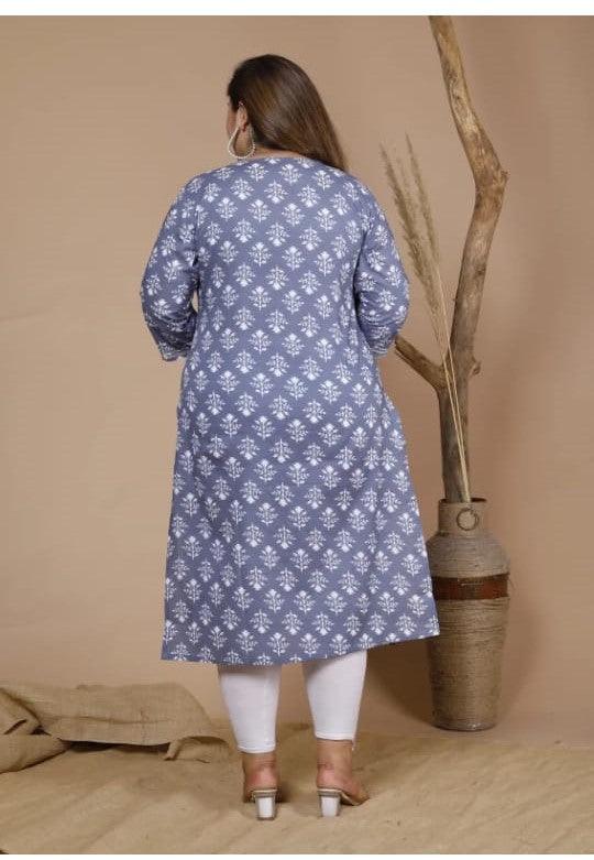 Women Floral Printed Cotton Straight Kurta (100019-Blue)