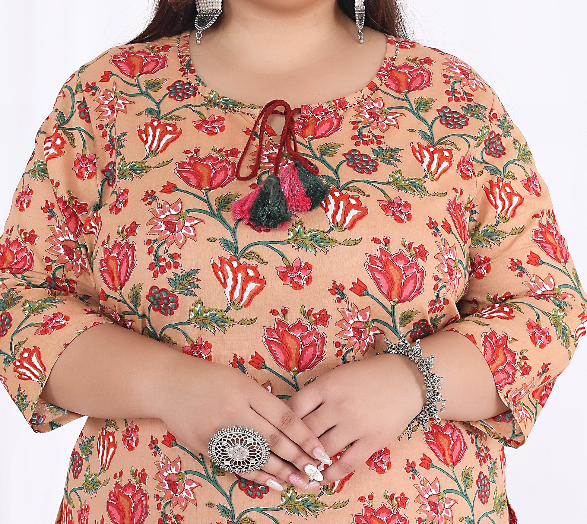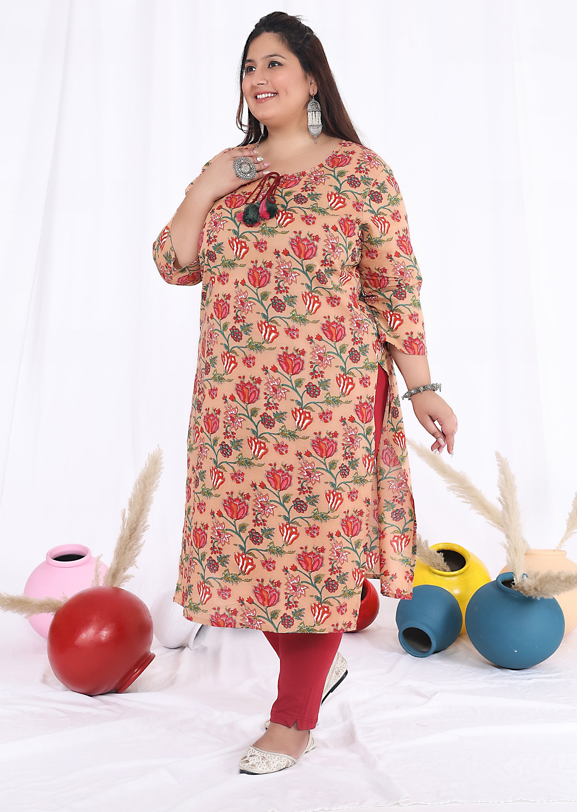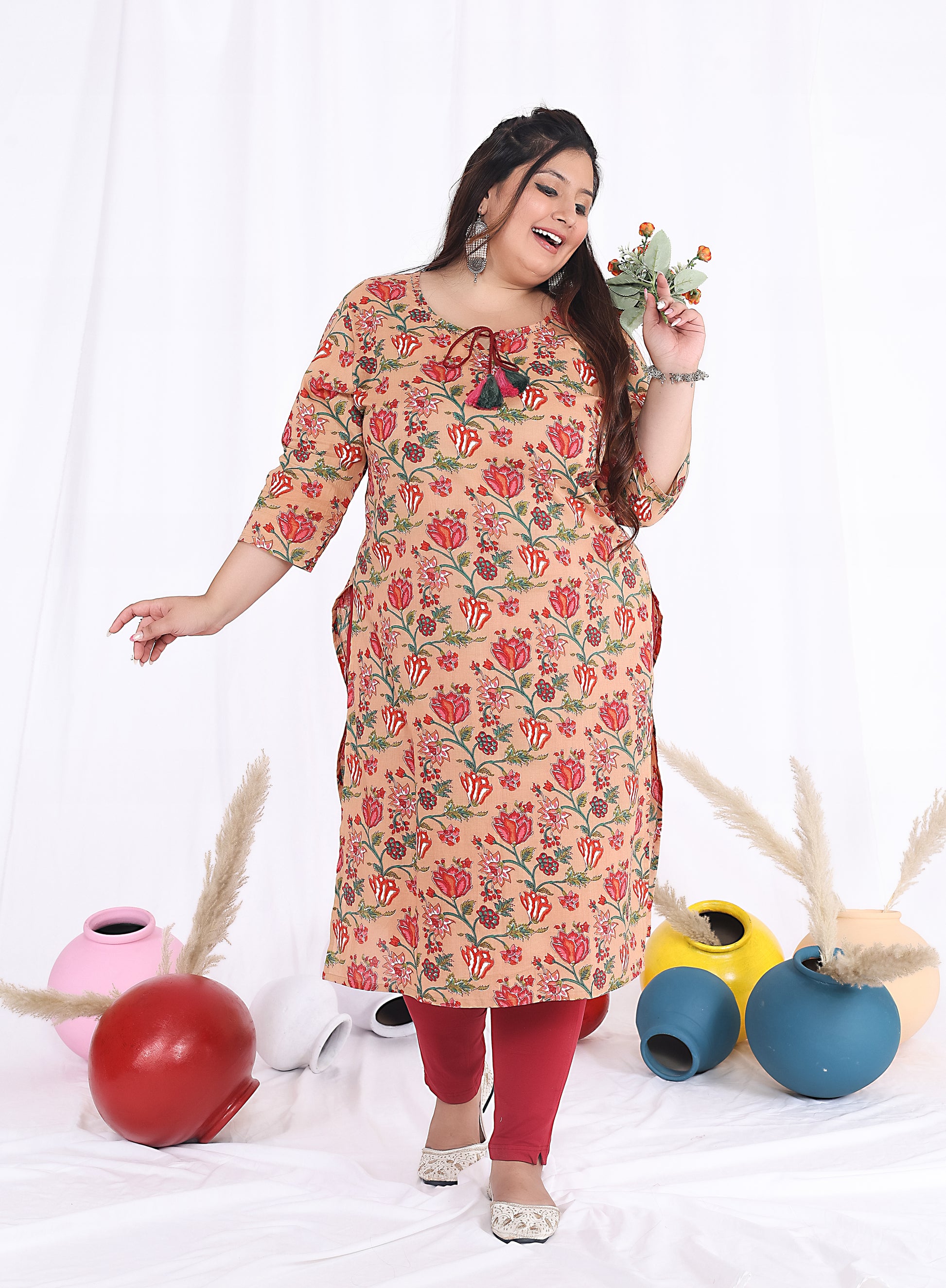 Women Printed Cotton Straight Kurta (B27-Beige)