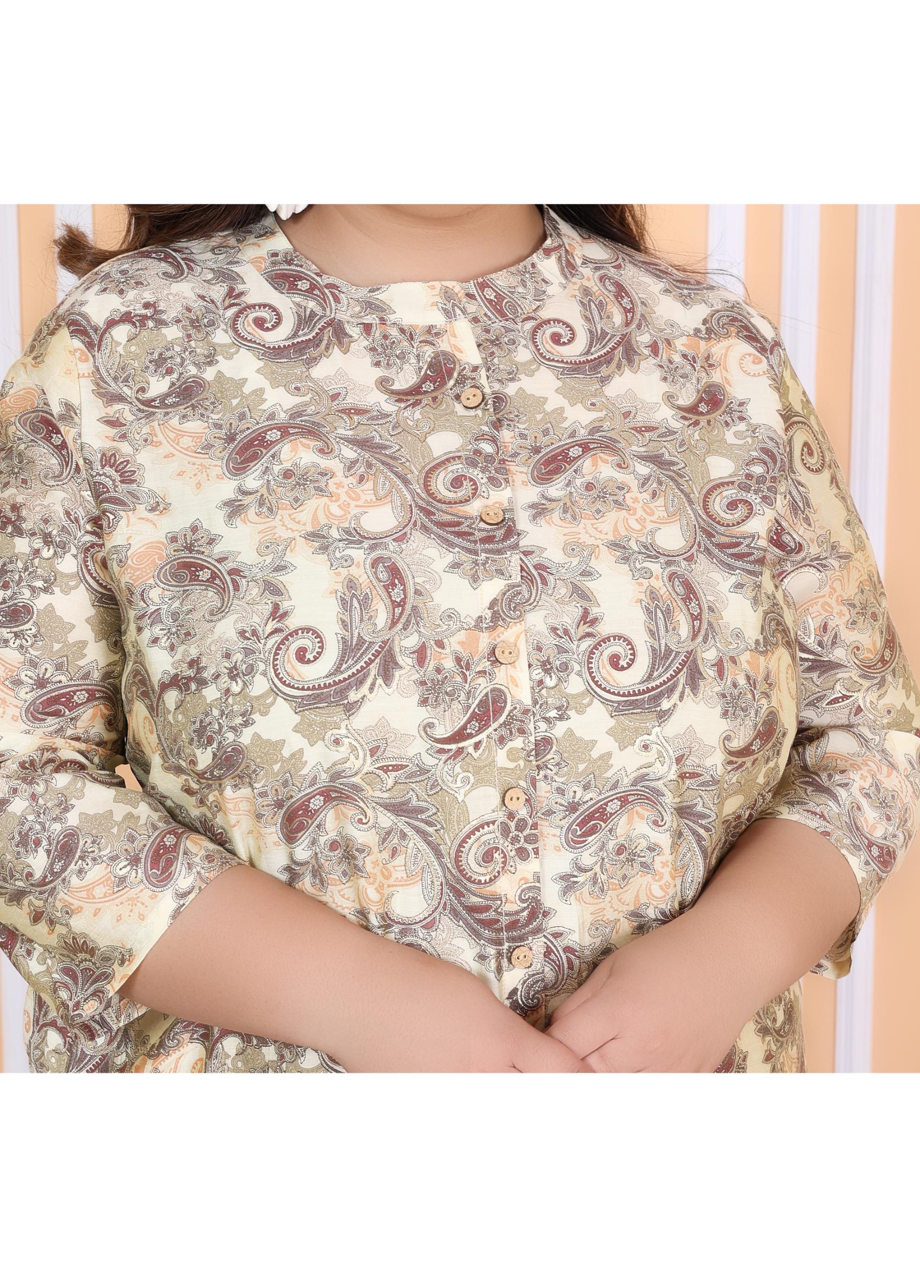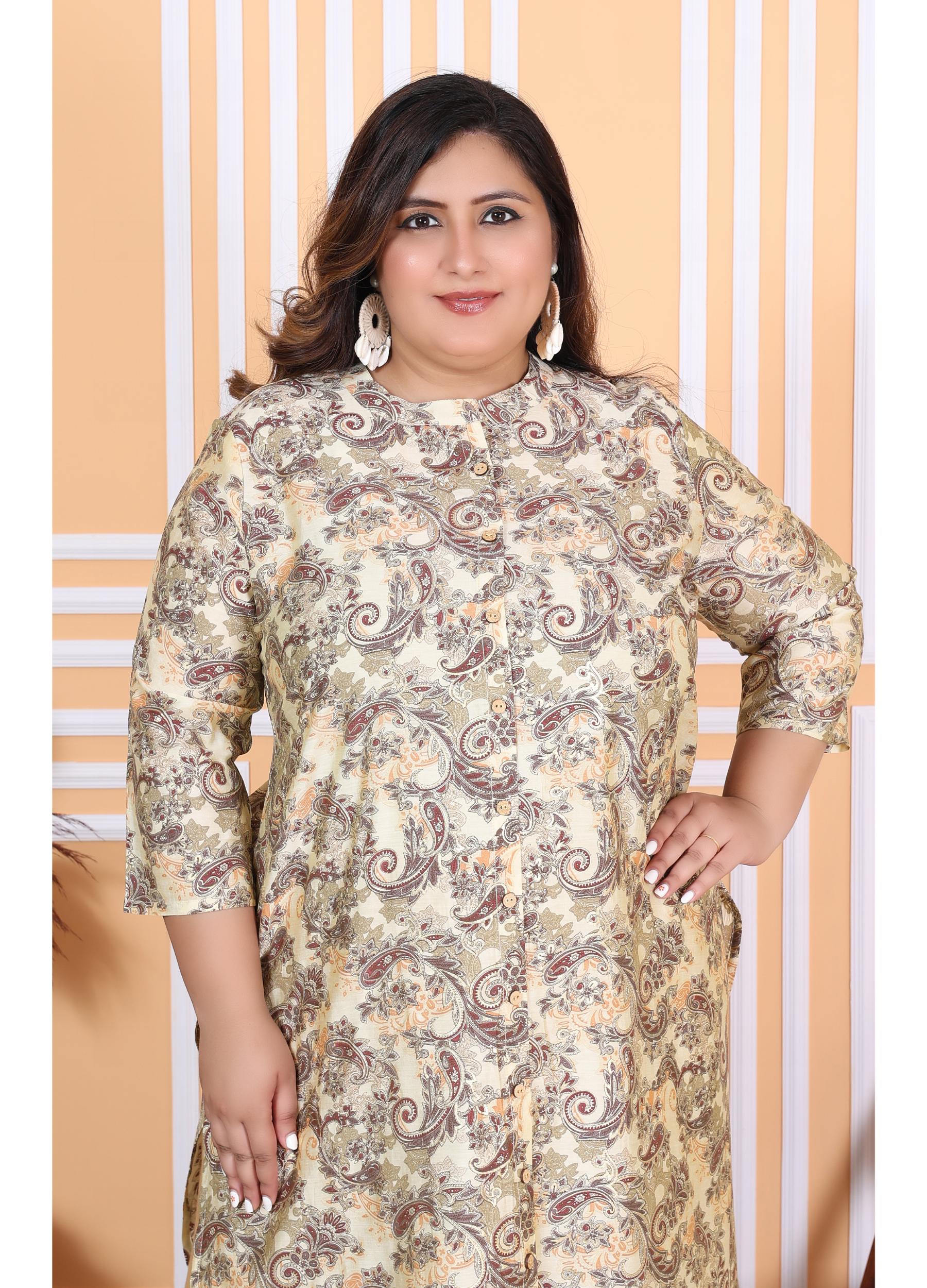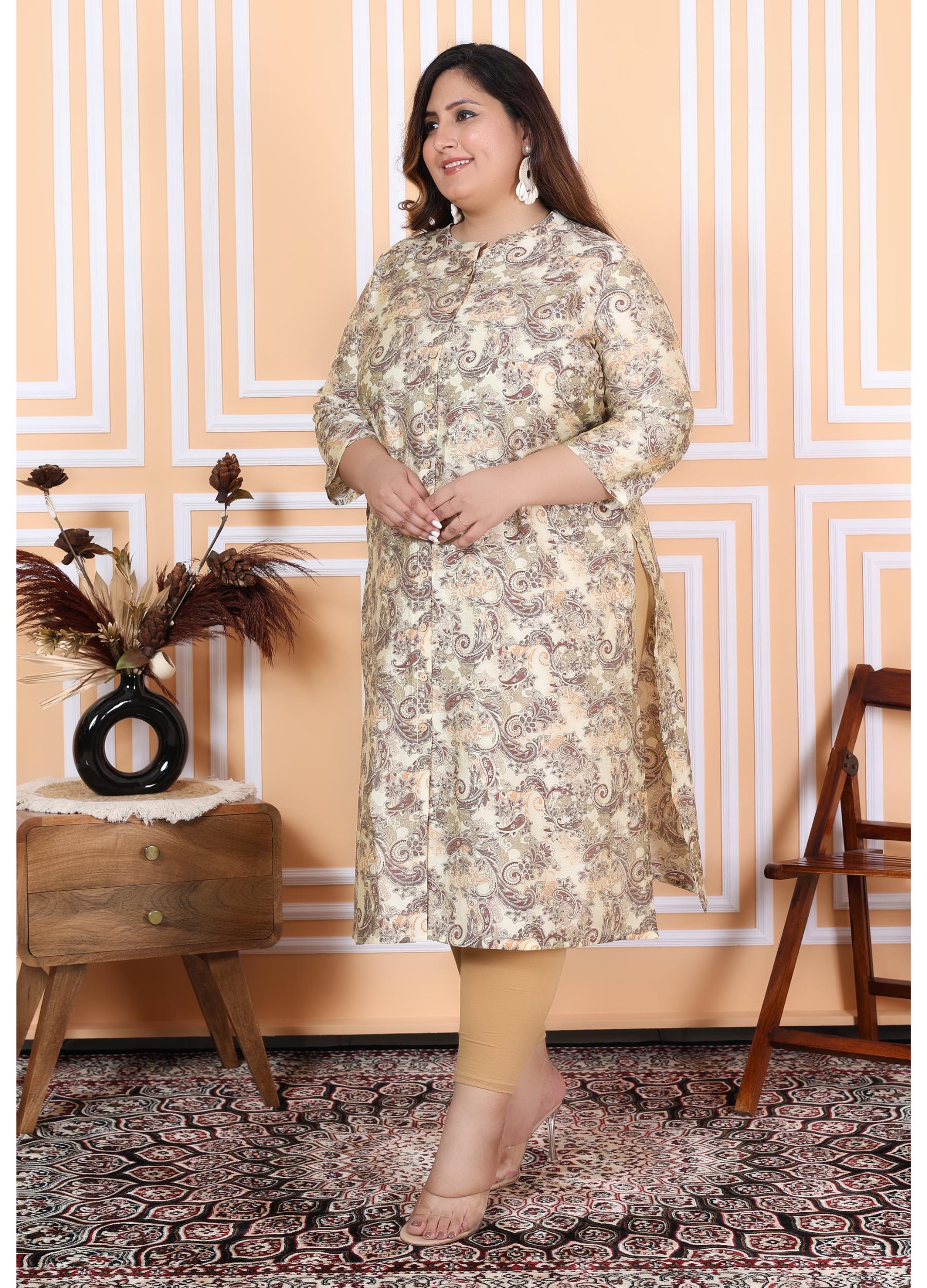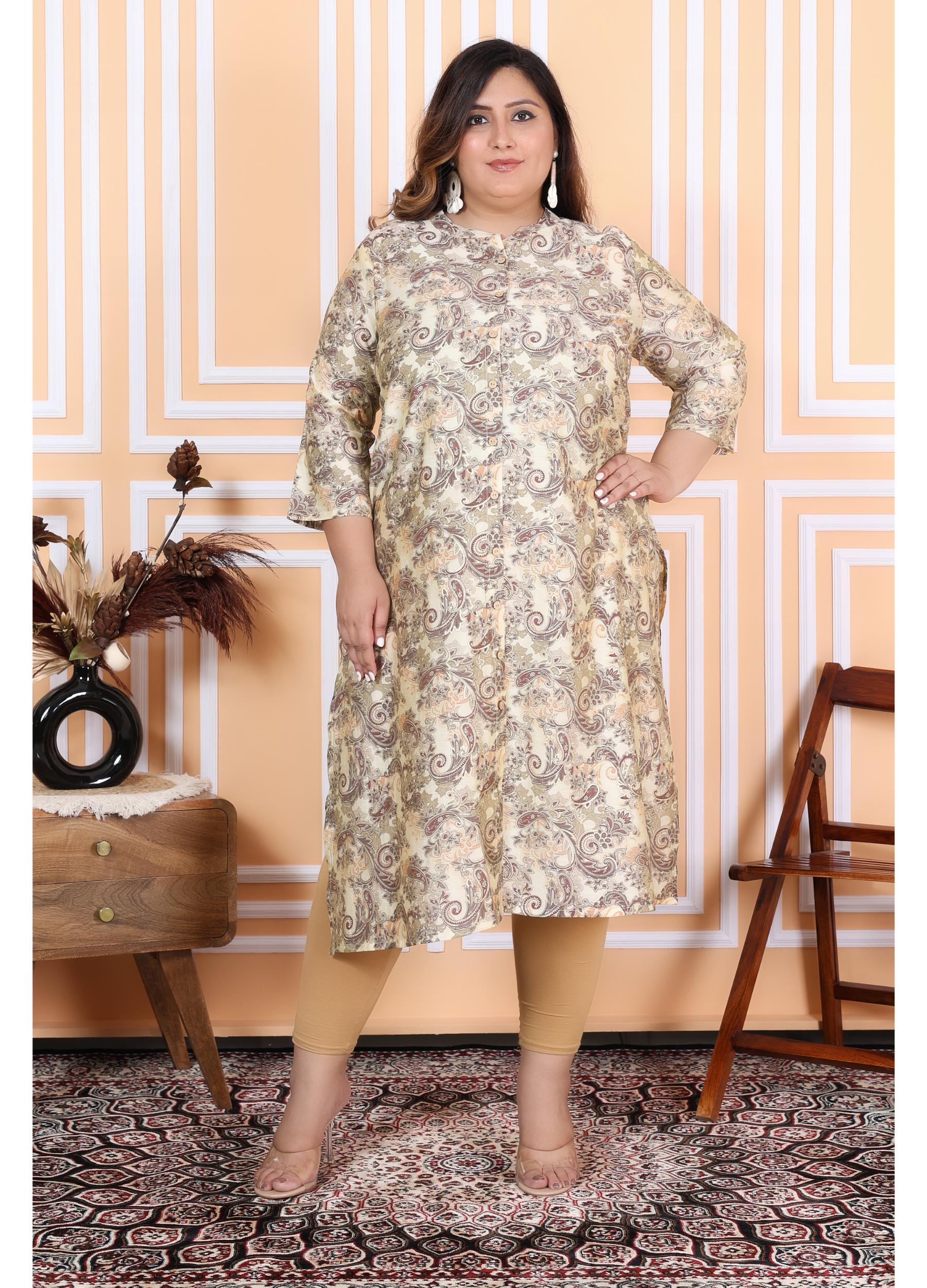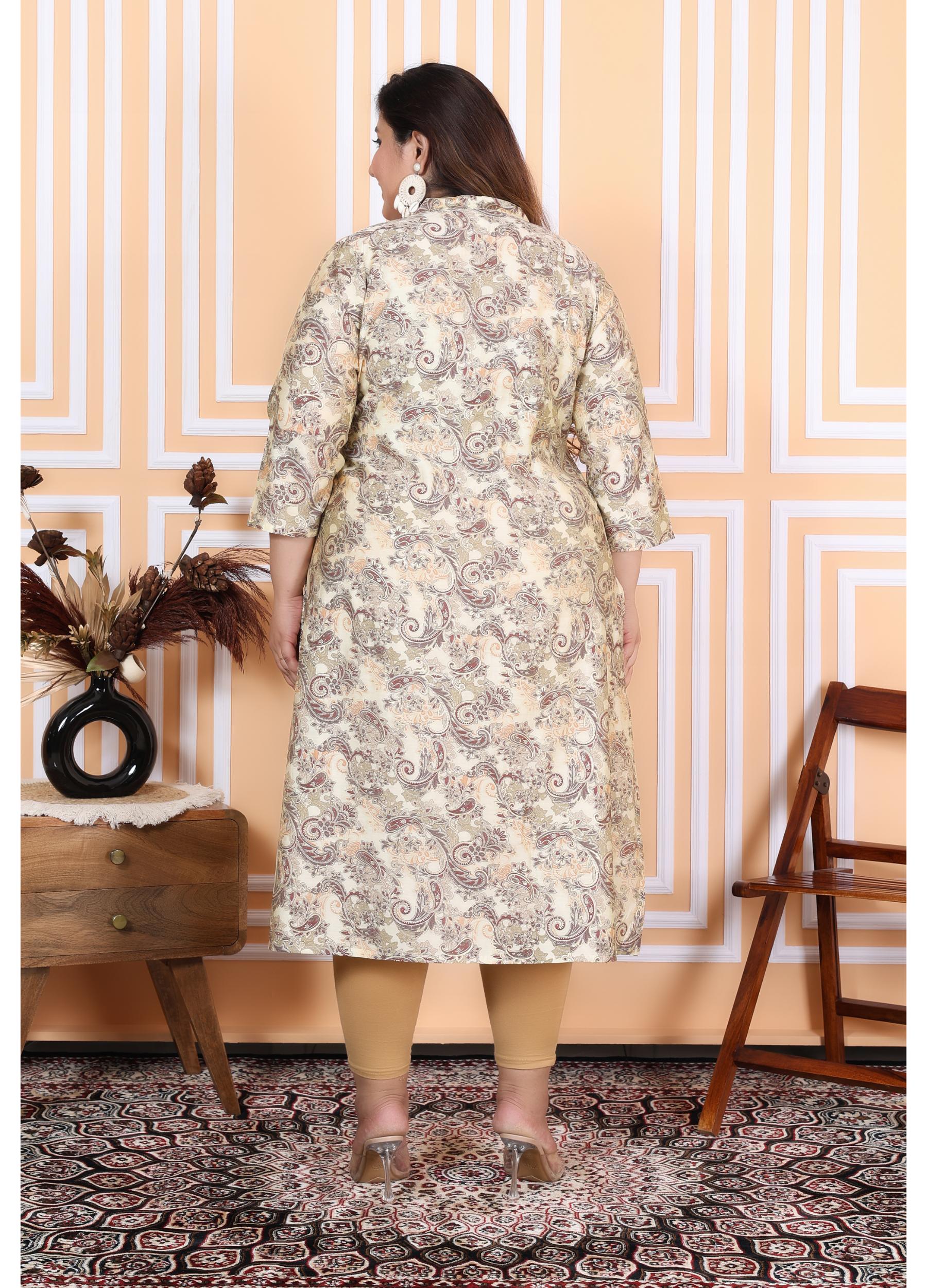 Women Printed Muslin A-line Kurta (100001-Beige)