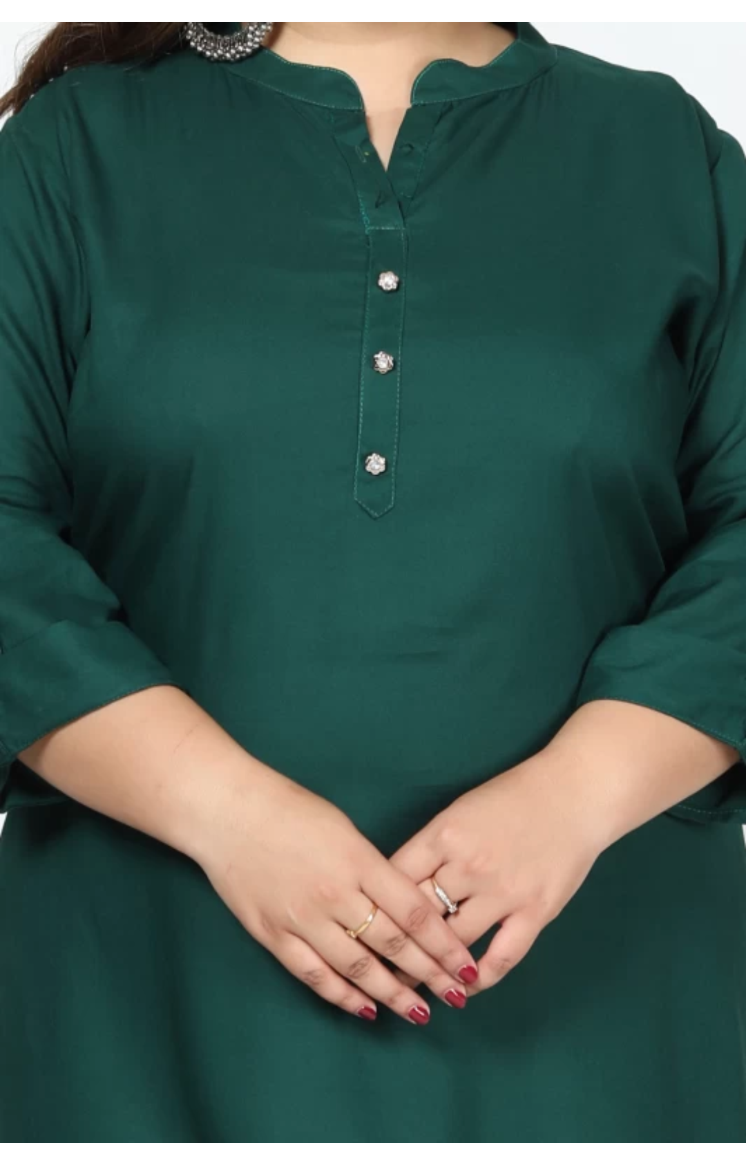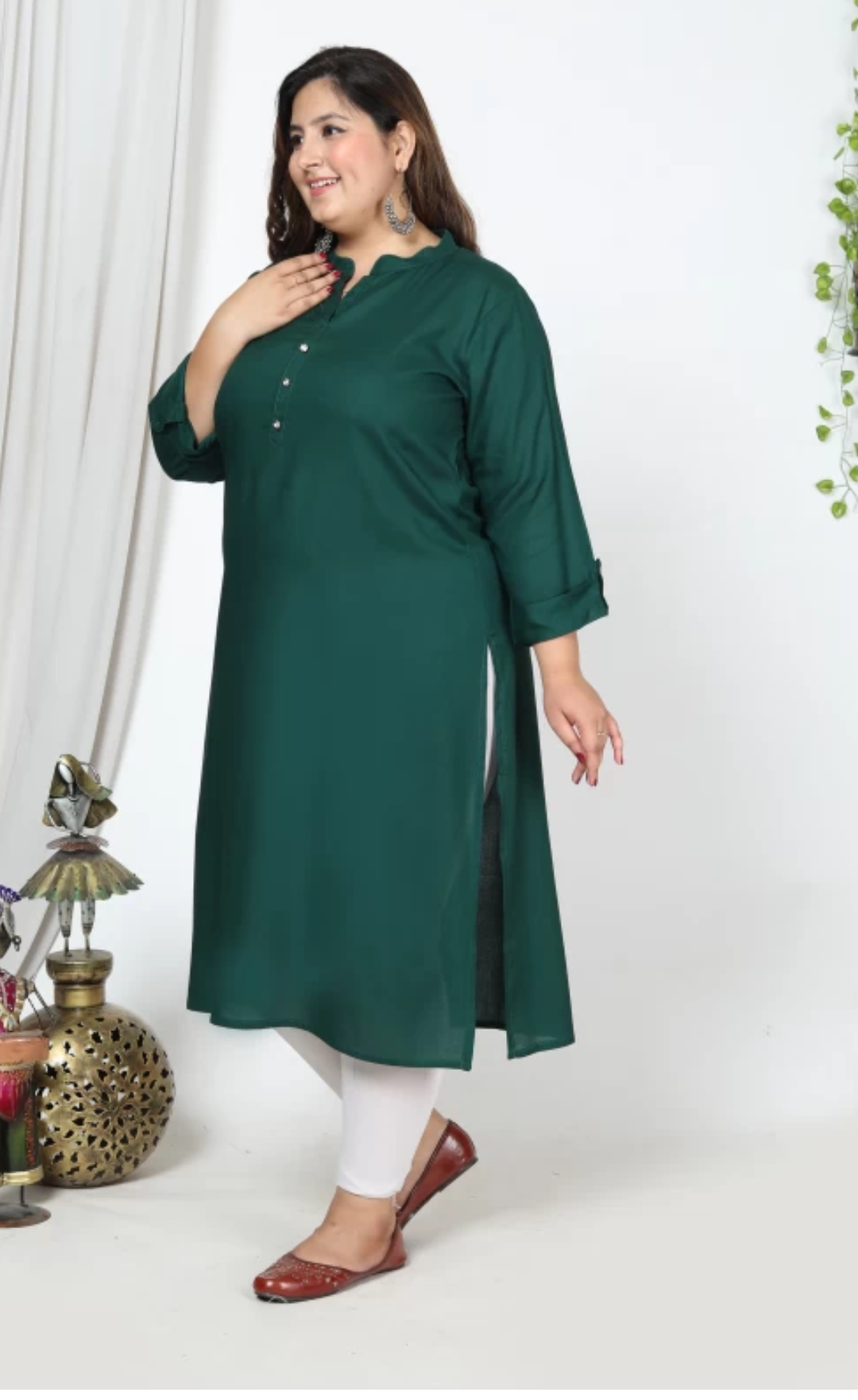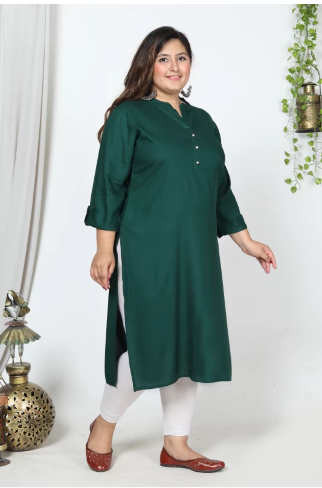 Women Solid Cotton Blend Straight Kurta (100016-Green)