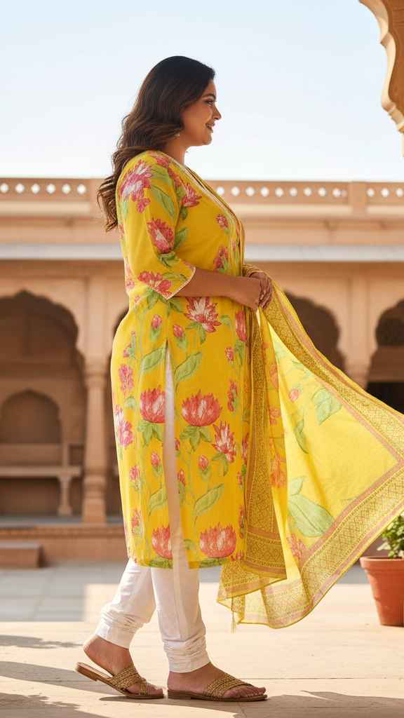 Discover your new wardrobe staple with our Plus Size Cotton Kurta and Dupatta Set. Designed with your comfort and confidence in mind, this set features a relaxed yet flattering fit that allows for easy movement and a beautiful drape.