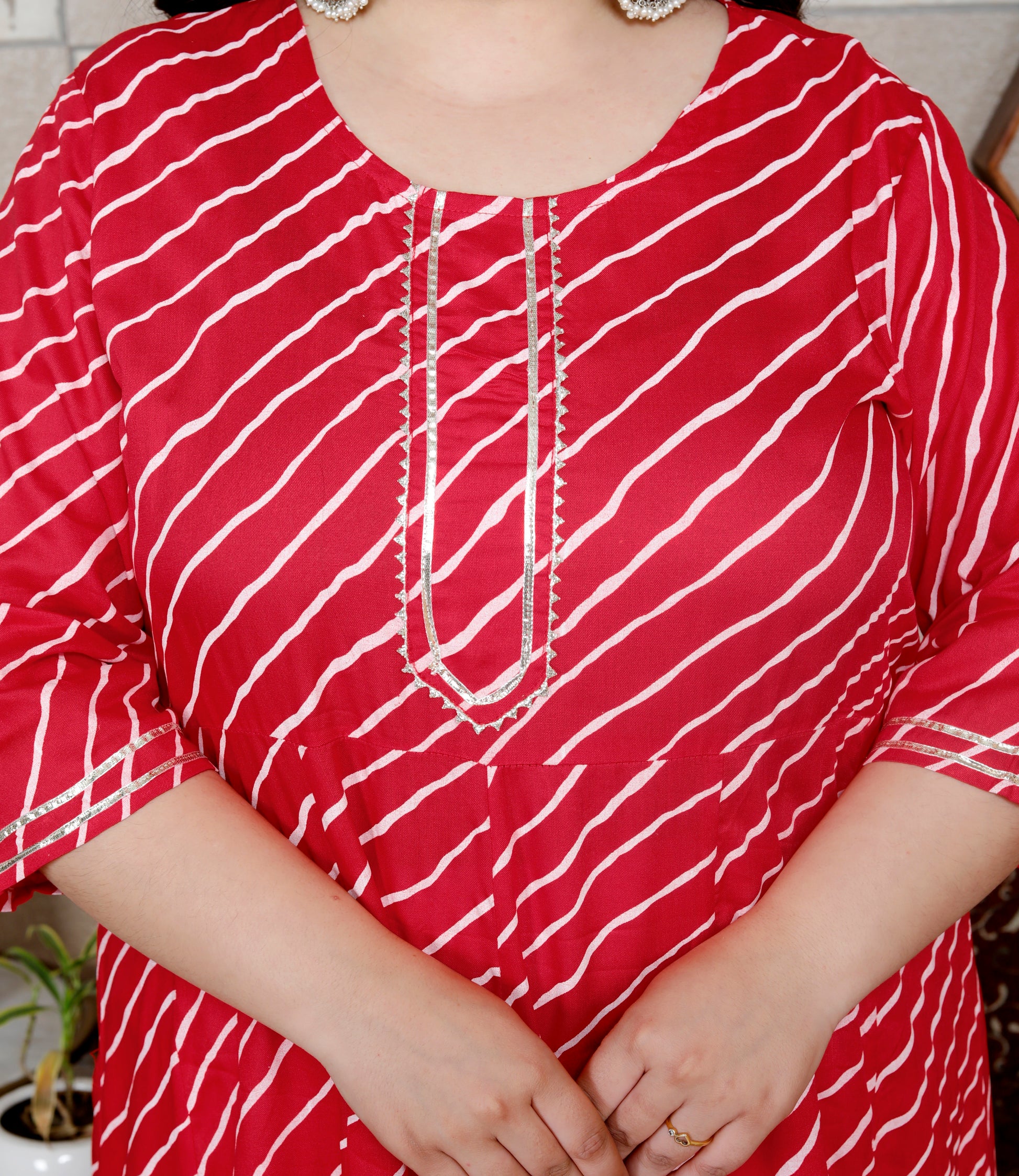 Plus Size Red Cotton Blend Lahariya Print Gown (B29-Red)