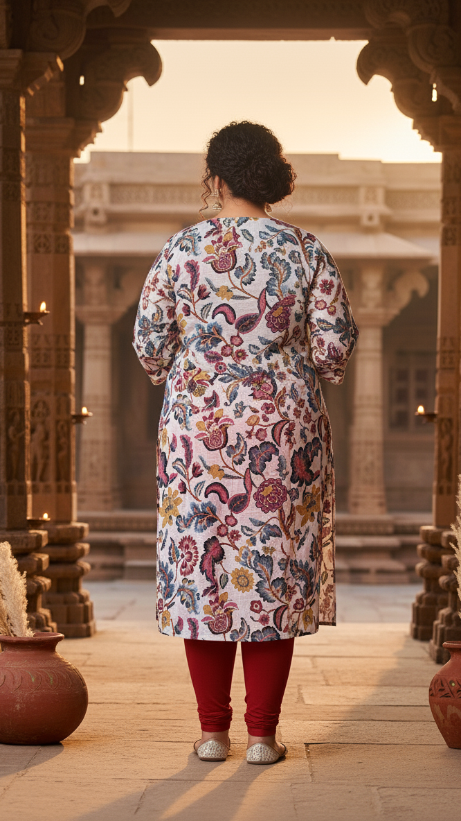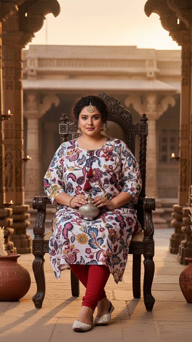 Meet your new favorite everyday essential: a comfortable and stylish plus-size kurta. Made from breathable, easy-to-care-for fabrics like pure cotton, rayon, or linen blend, this kurta is designed for all-day comfort. It features a relaxed fit with a slight A-line or straight-cut that allows for effortless movement and doesn't cling. Choose from vibrant block prints, subtle , or classic solids to easily mix and match with jeans, leggings, or casual . It’s the perfect blend of traditional style and modern, comfortable wear for work, errands, or casual gatherings.