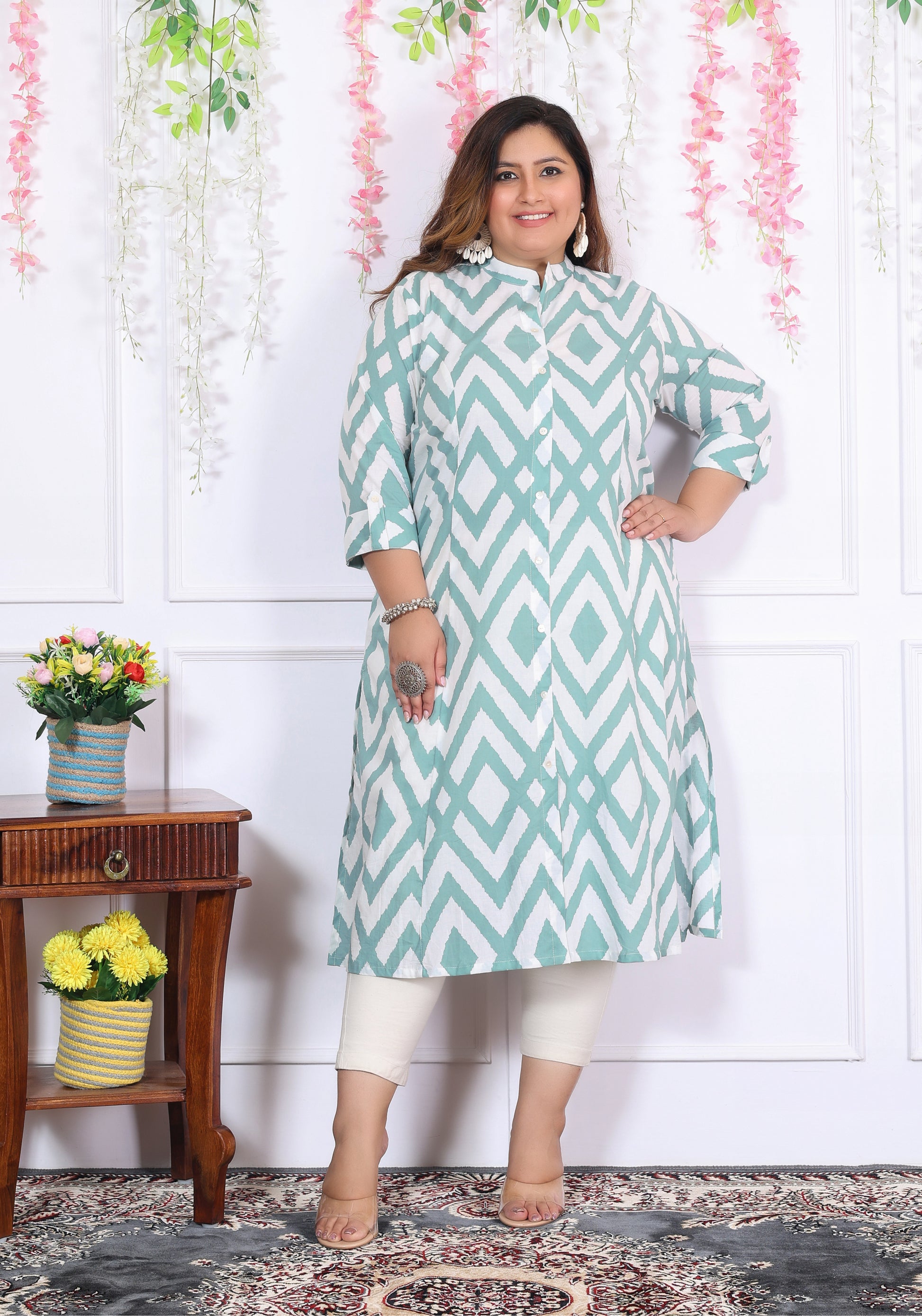 Women Printed Cotton A-line Kurta (B04-Blue)