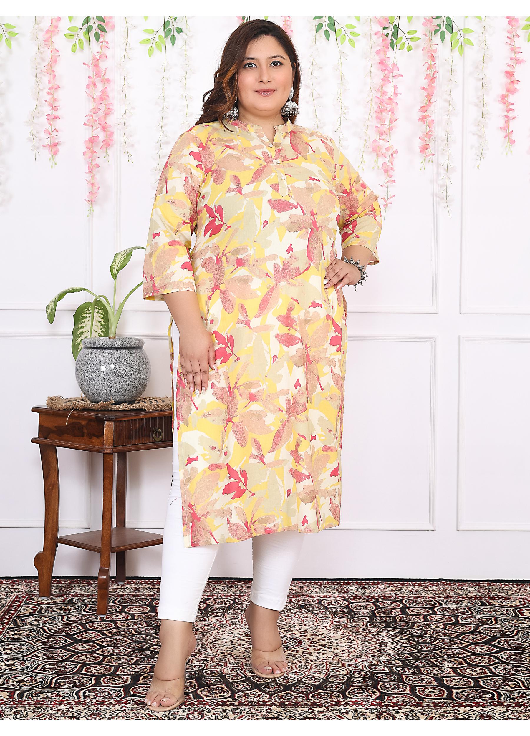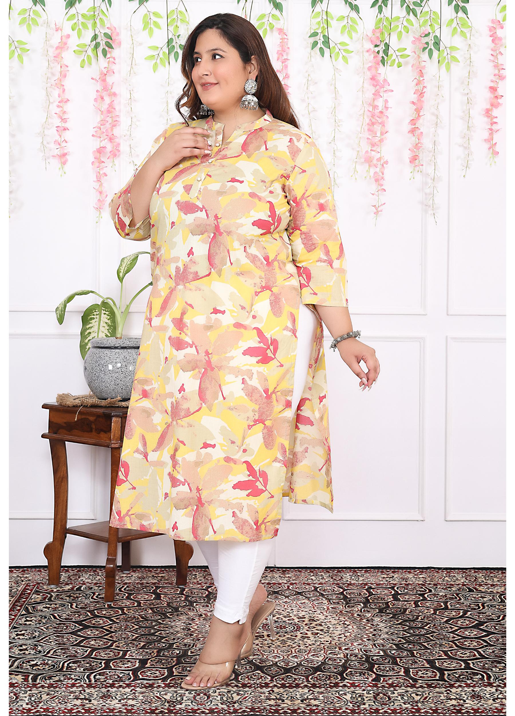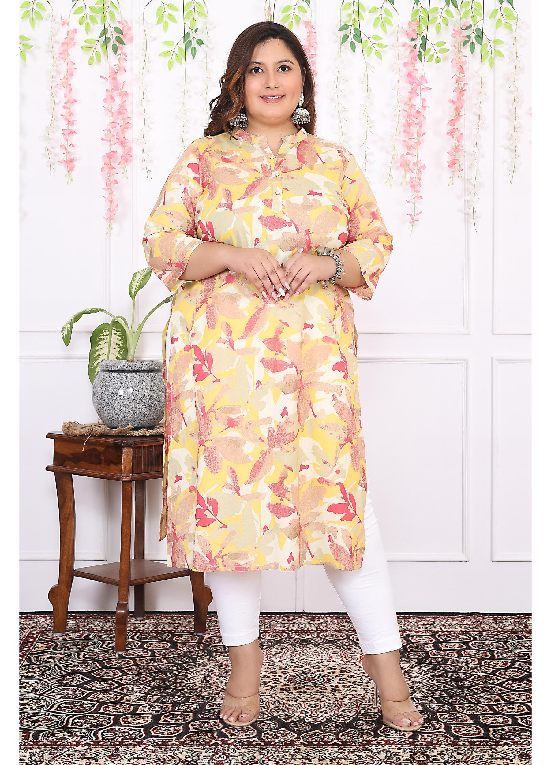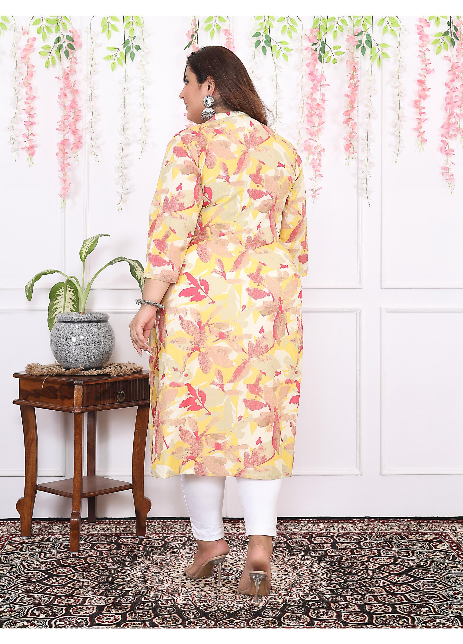 Women Printed Cotton Straight Kurta (B11-Yellow)