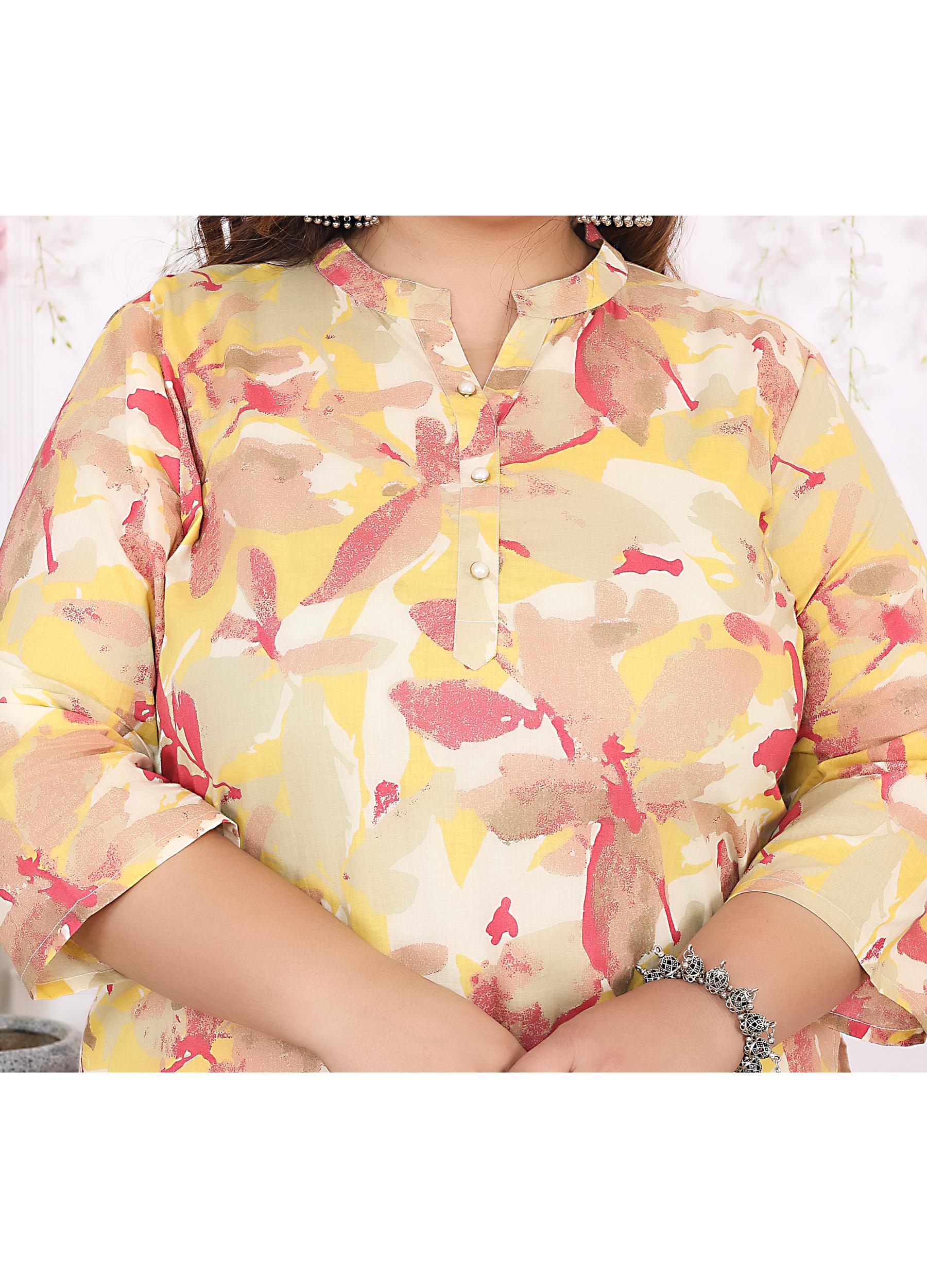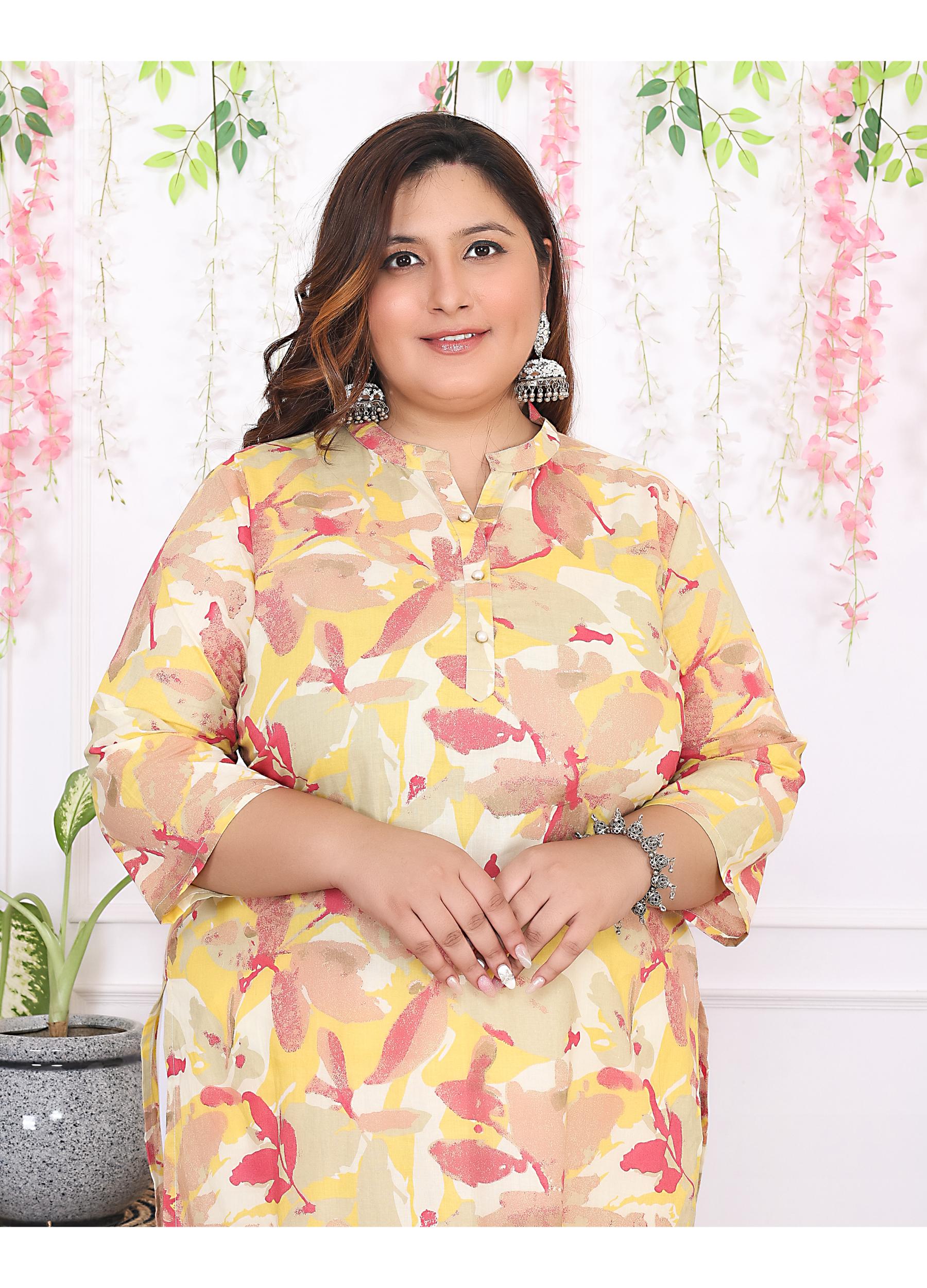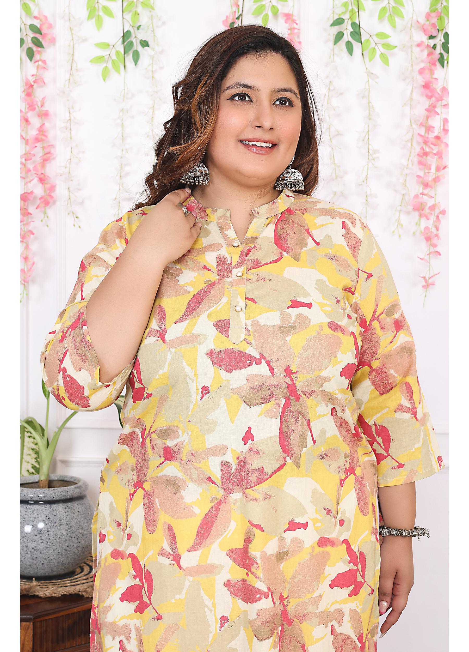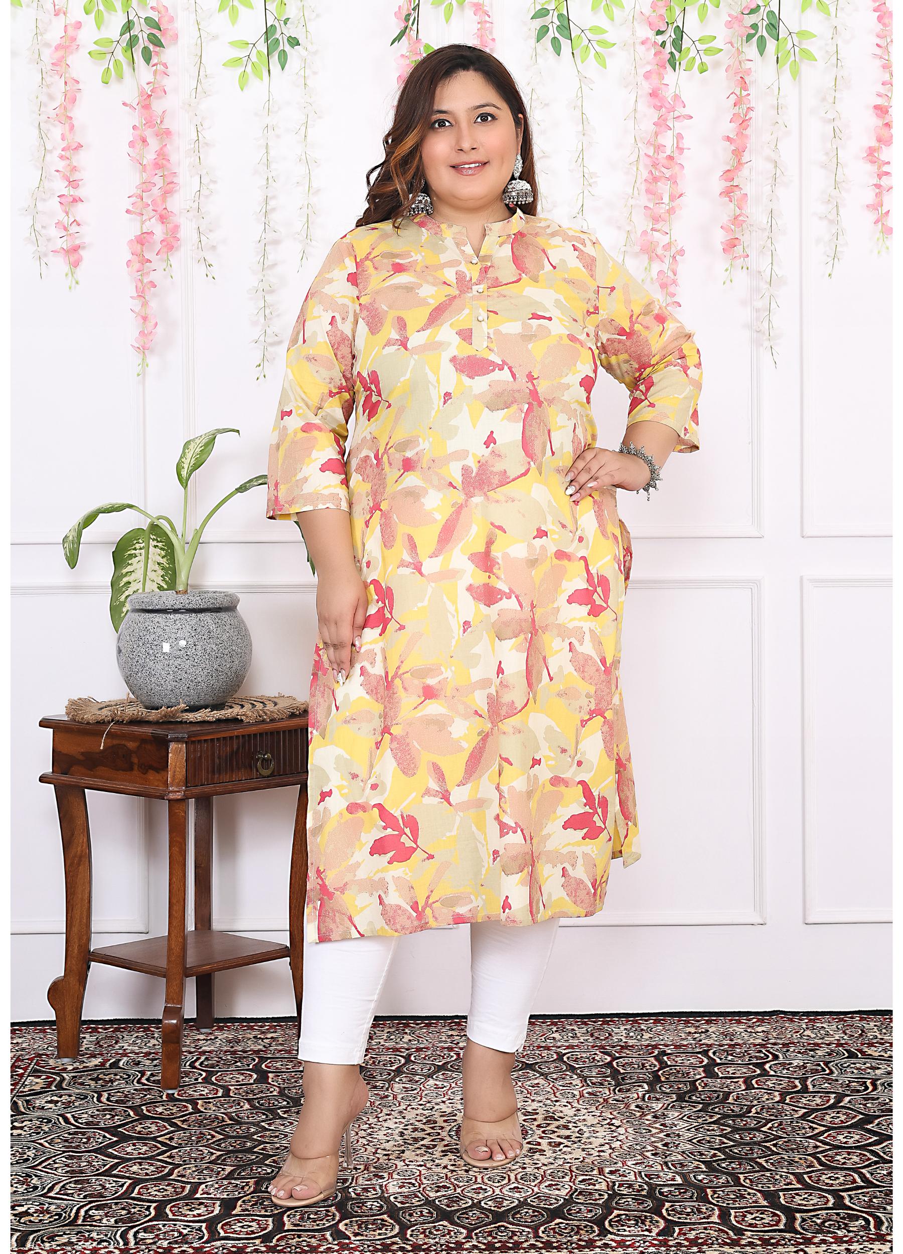 Women Printed Cotton Straight Kurta (B11-Yellow)