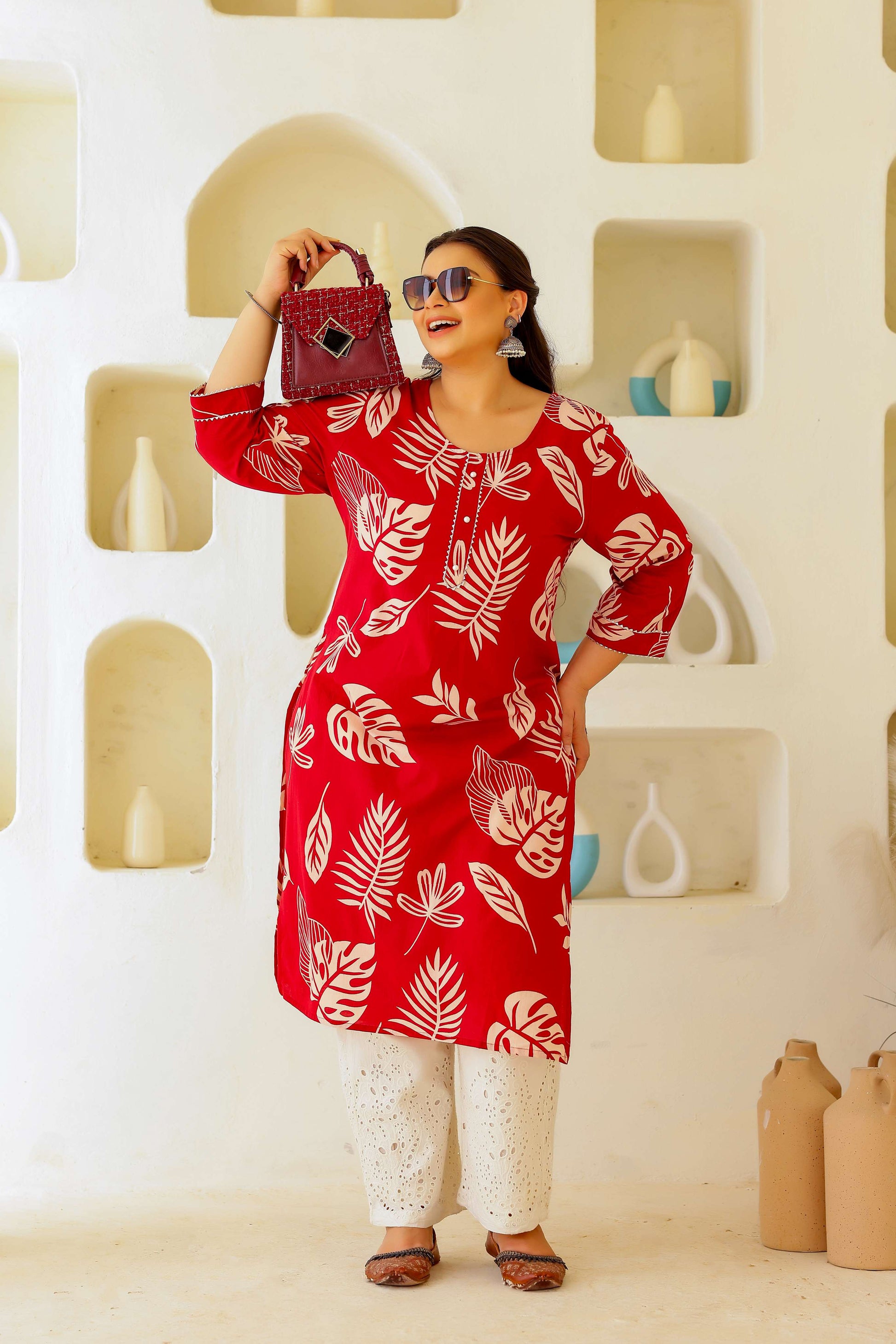 Women's Plus Size Cotton Kurti with 3/4 Sleeves – Elegant & Comfortable