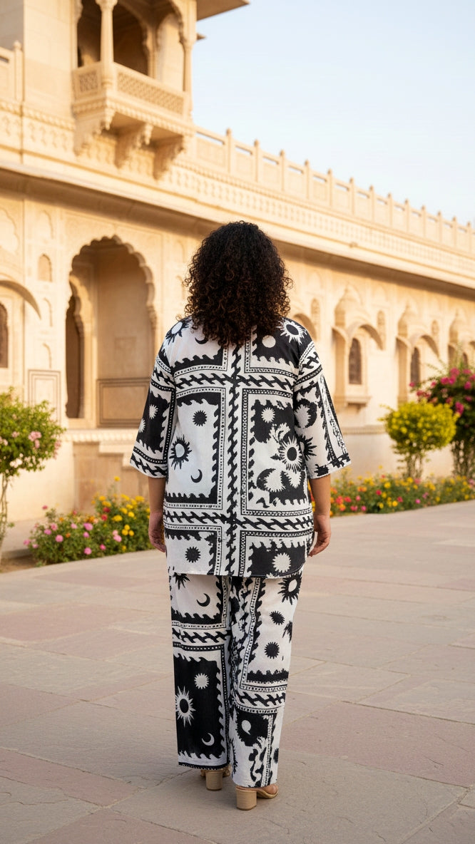 Plus Size Black Abstract Cotton Co-ord Set – Comfortable Everyday Wear for Women