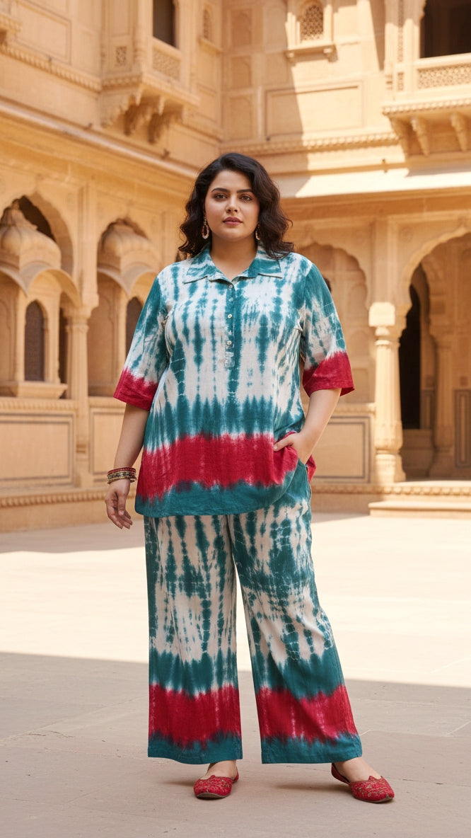Plus Size Multicolor Cotton Co-ord Set – Comfortable Everyday Wear for Women
