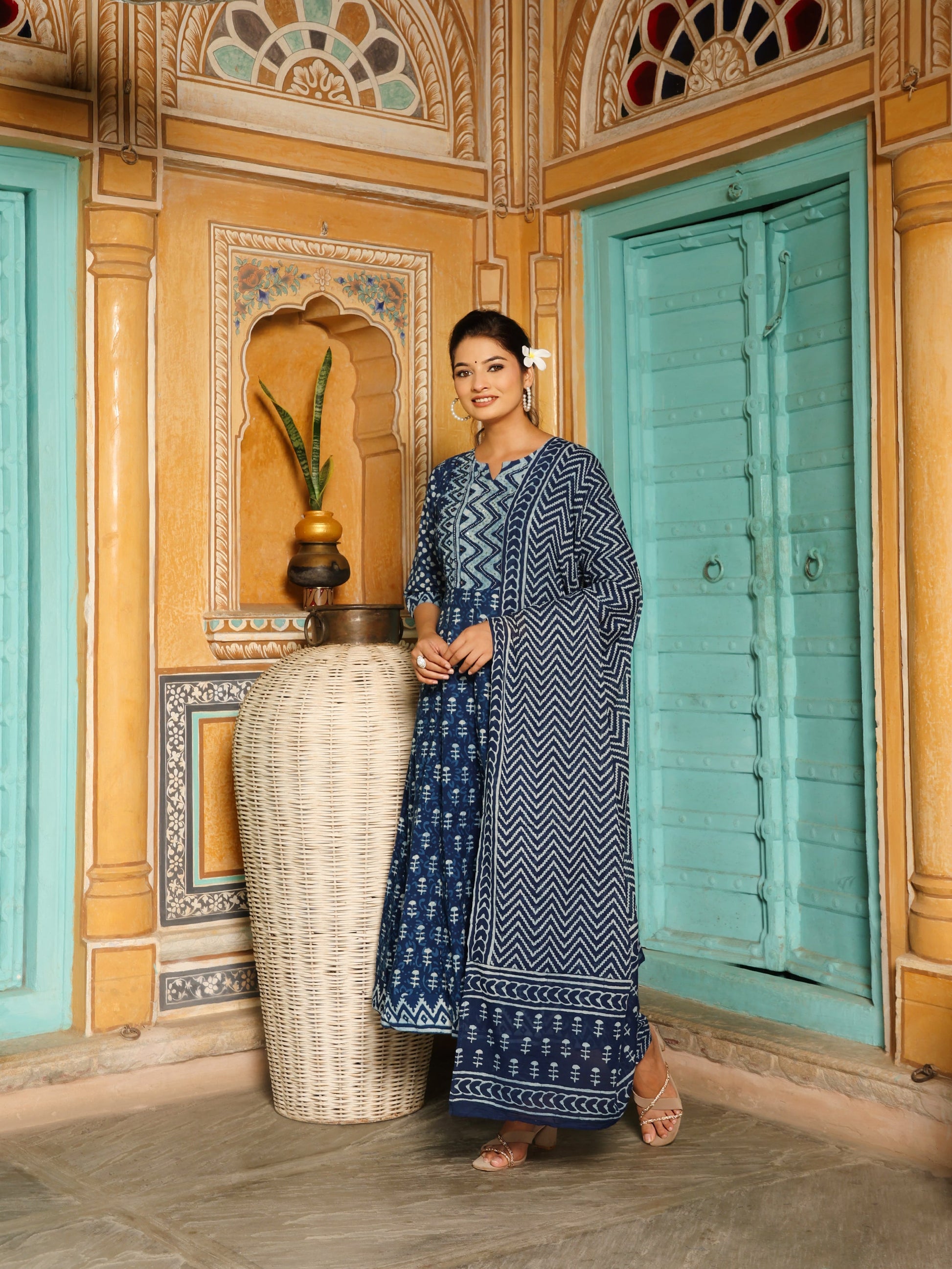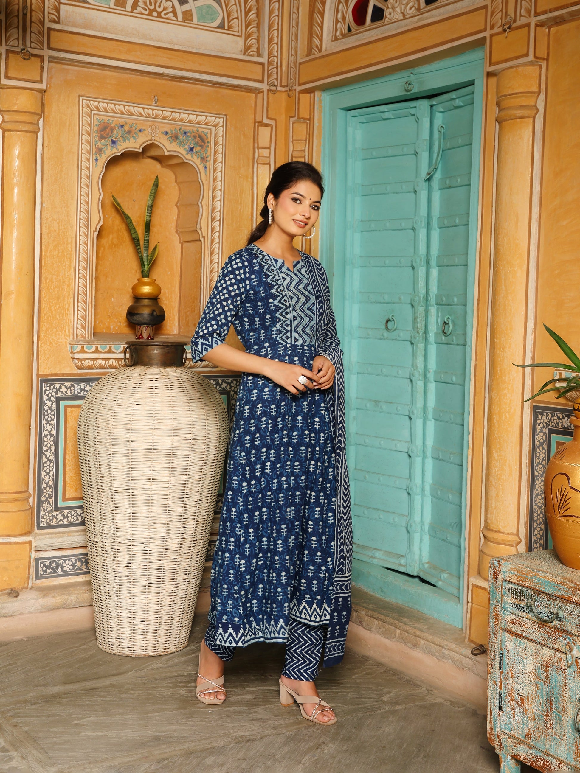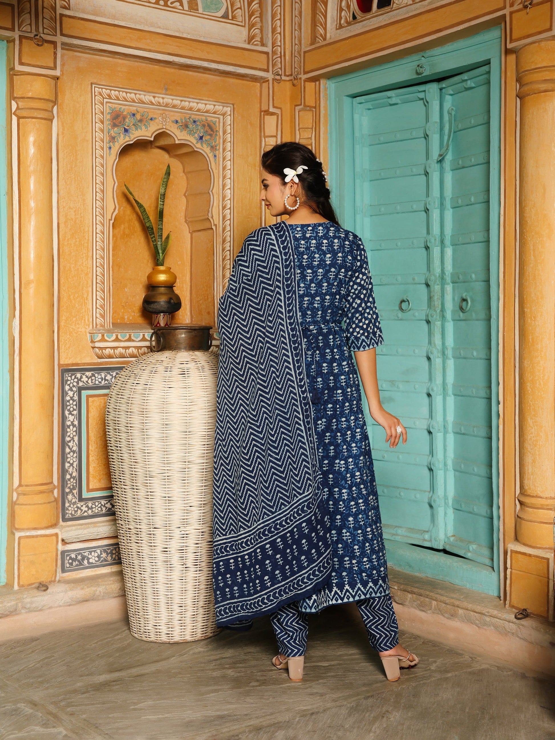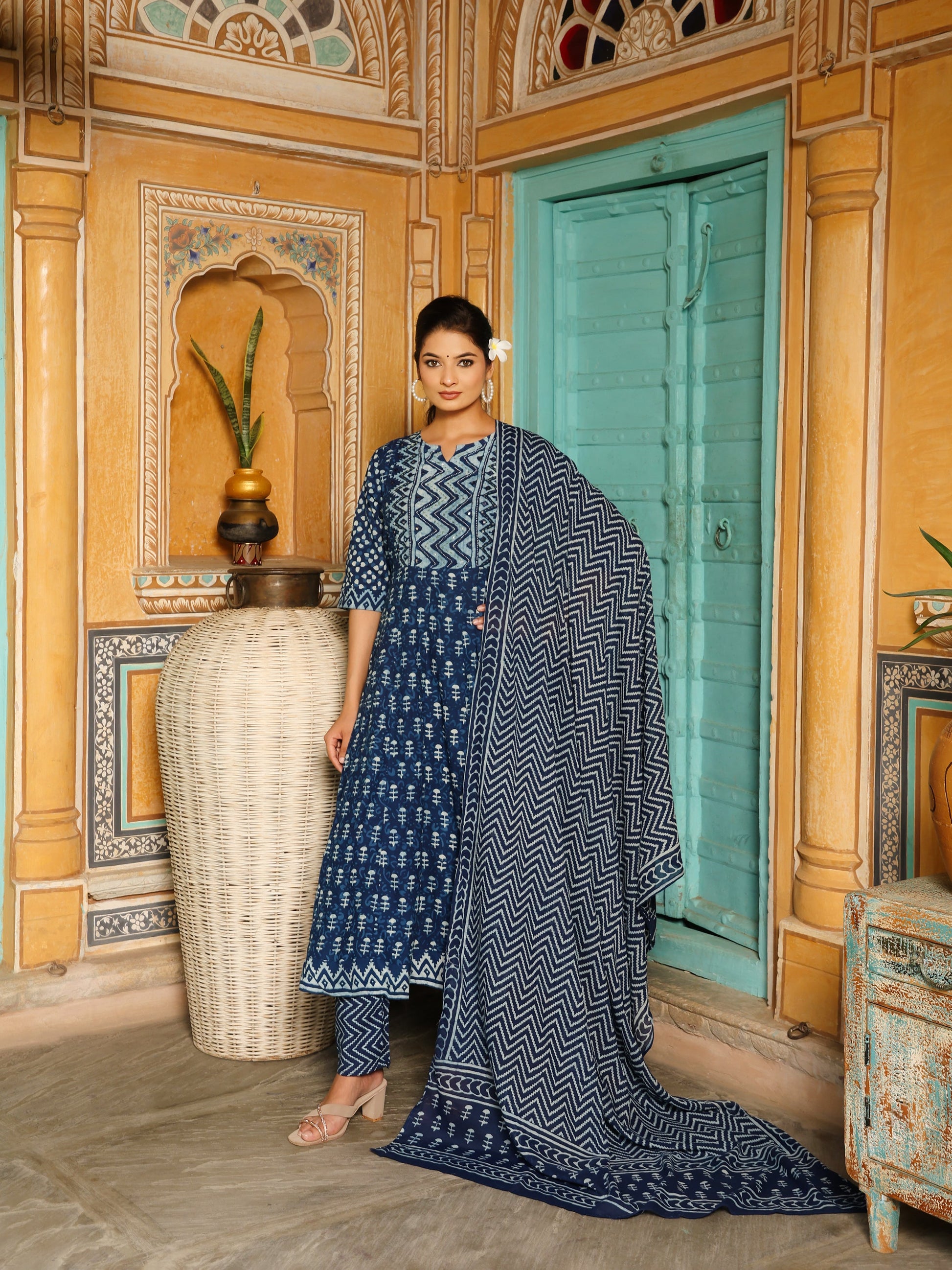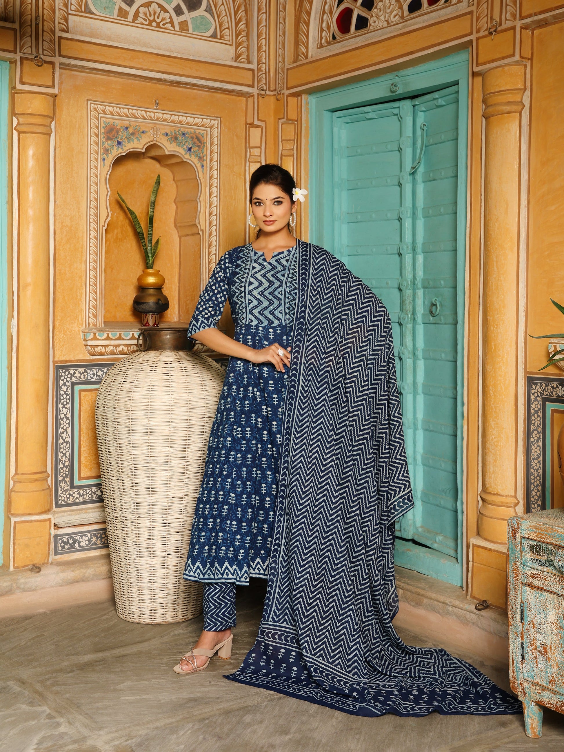 Deep Indigo Blue Geometric Print Cotton Anarkali Set  Export to Sheets