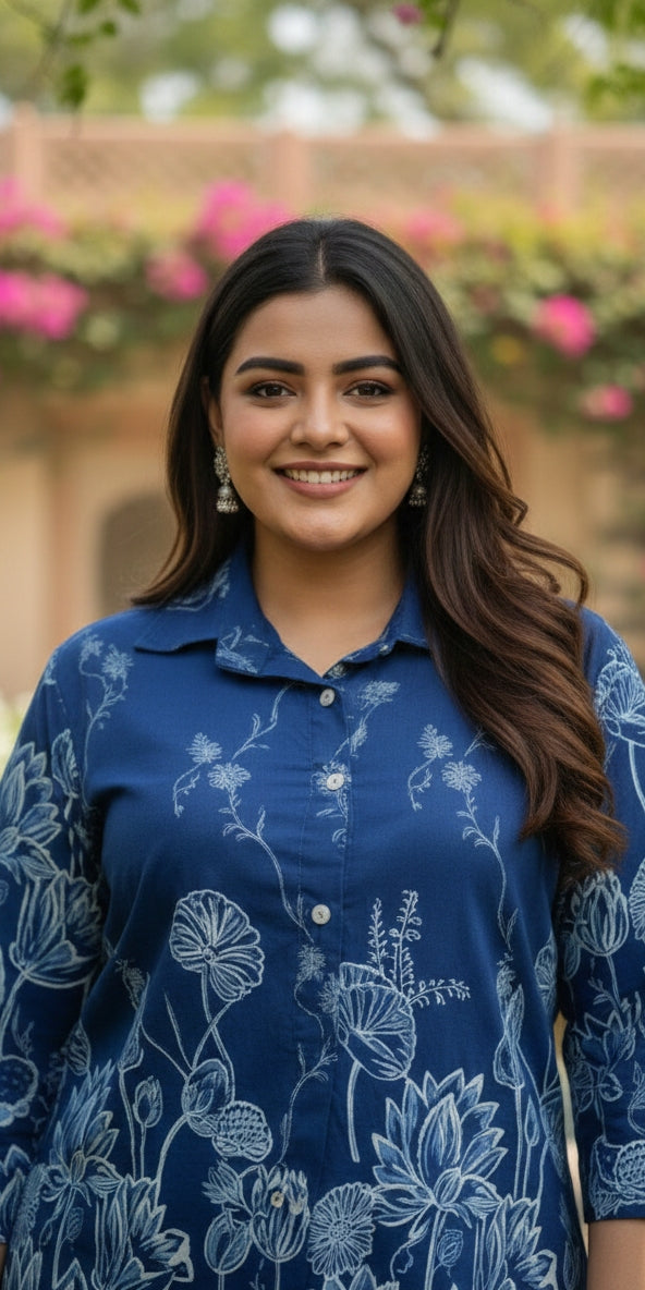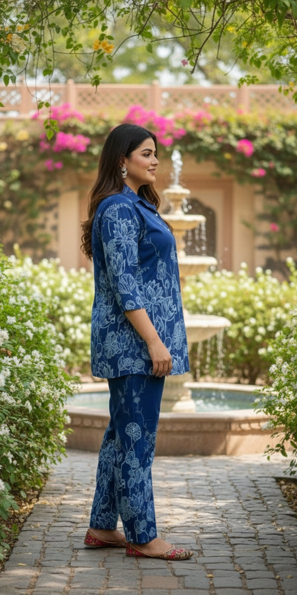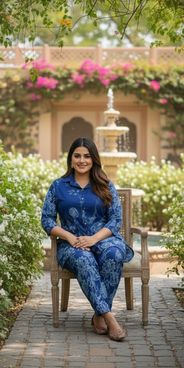 Plus Size Indigo Cotton Co-ord Set – Comfortable Party Wear for Women