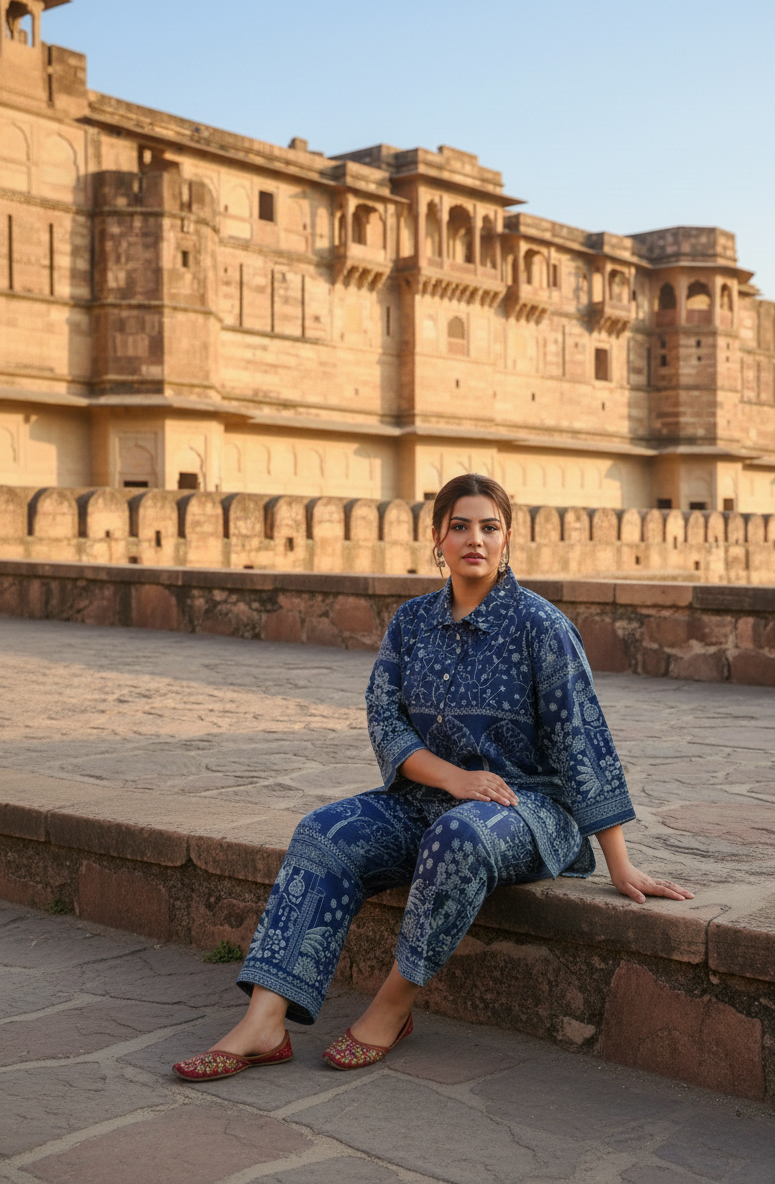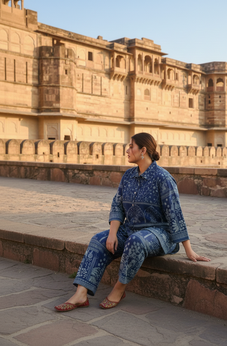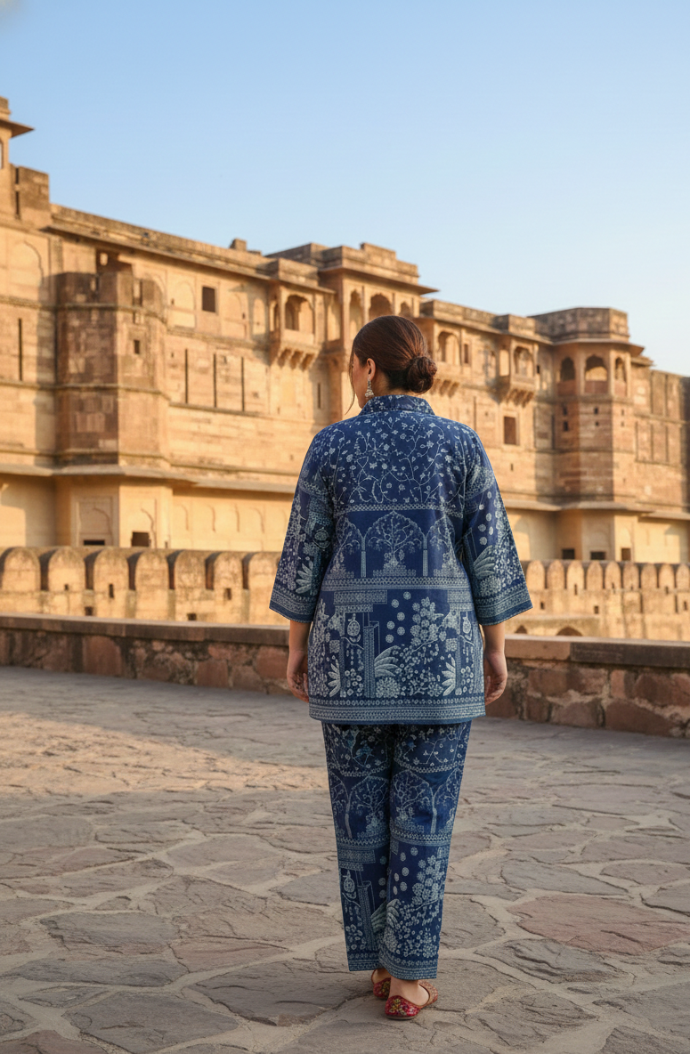 Plus Size Indigo Cotton Co-ord Set – Comfortable Party Wear for Women