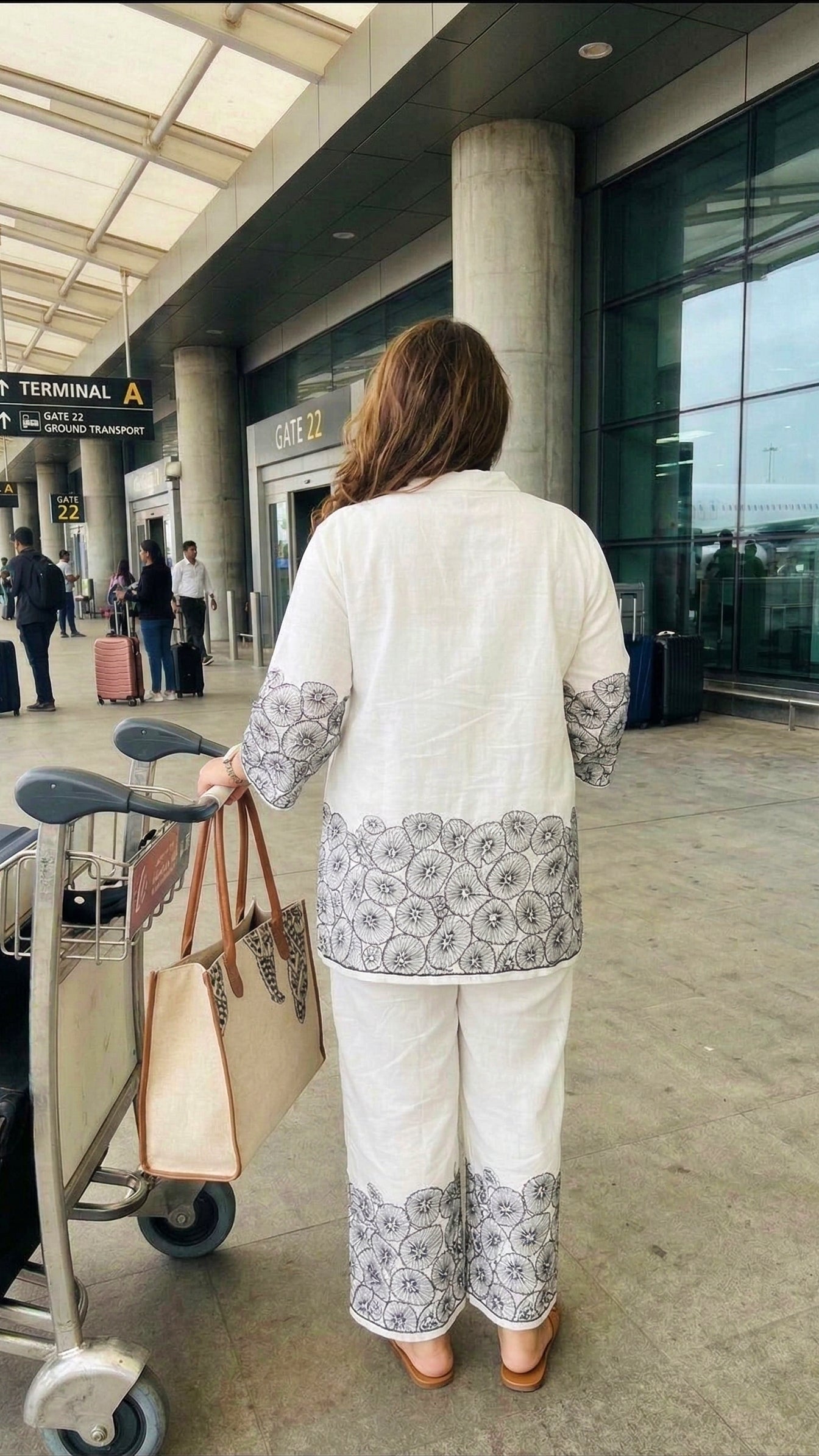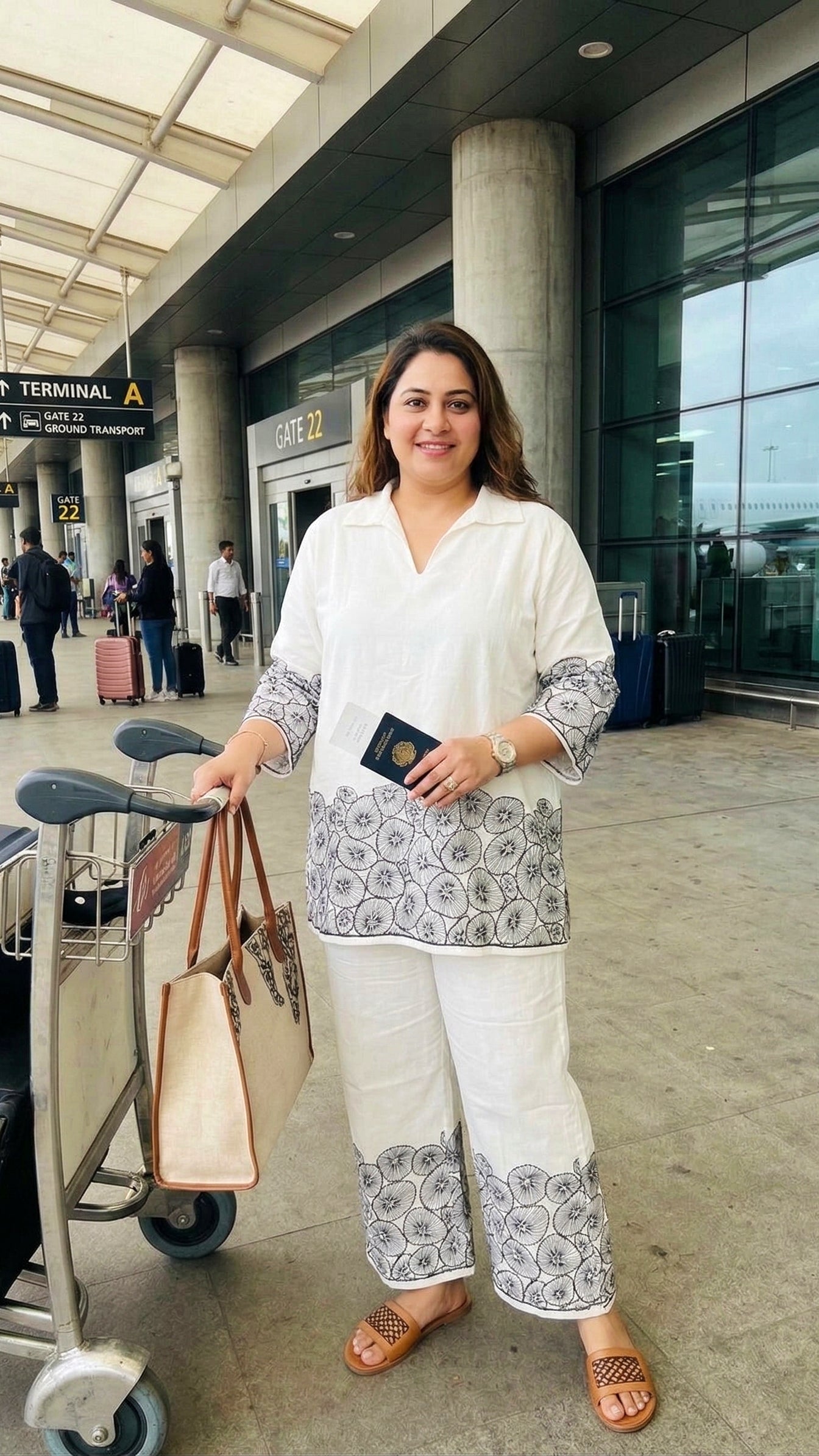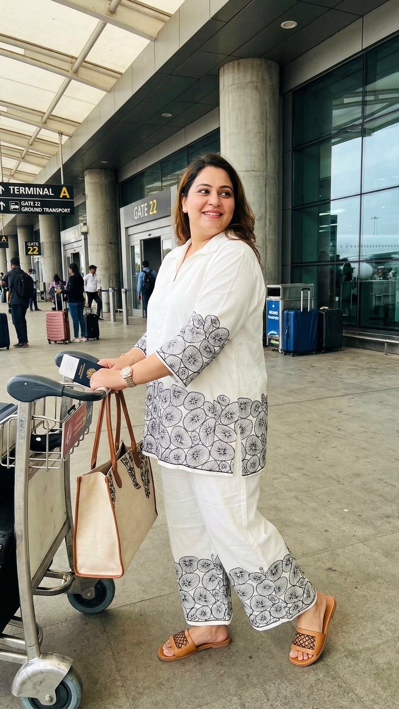 Plus Size White Cotton Co-ord Set with Black Floral Print | Travel-Friendly Casual Co-ords for Women