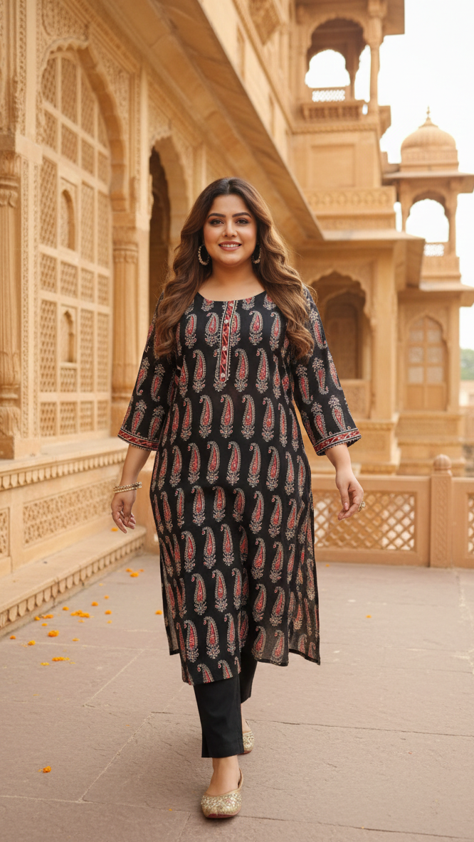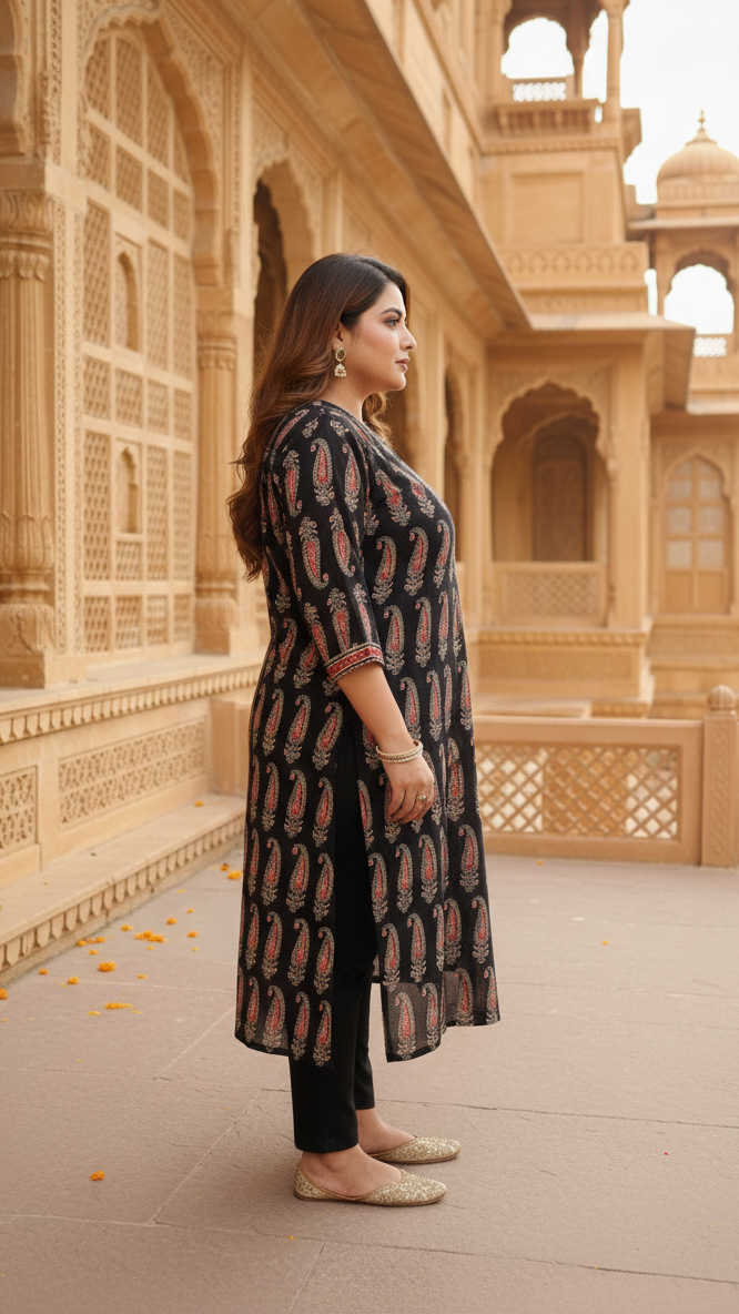 Elegant Black Paisley Kurti – Classic Ethnic Look