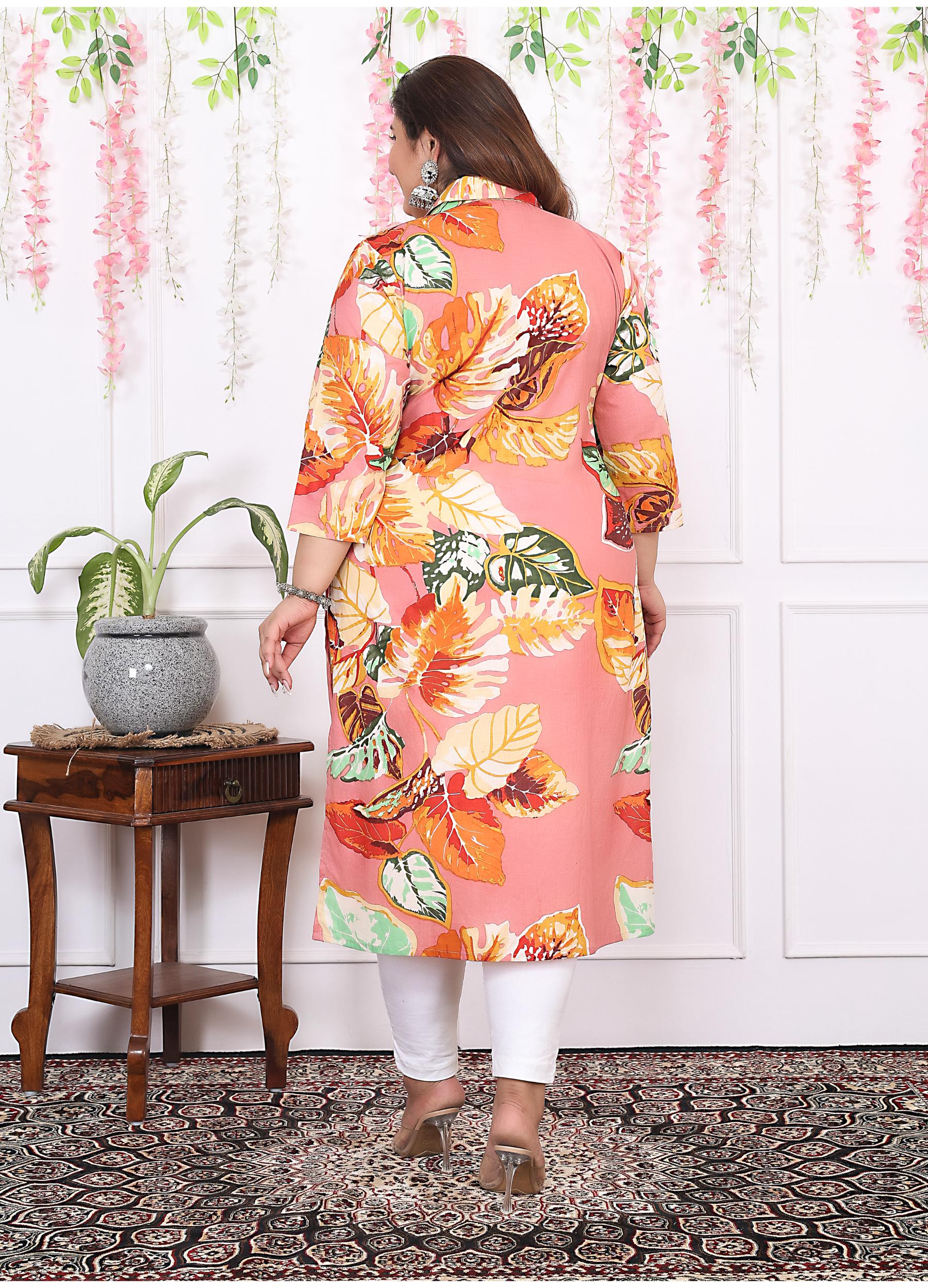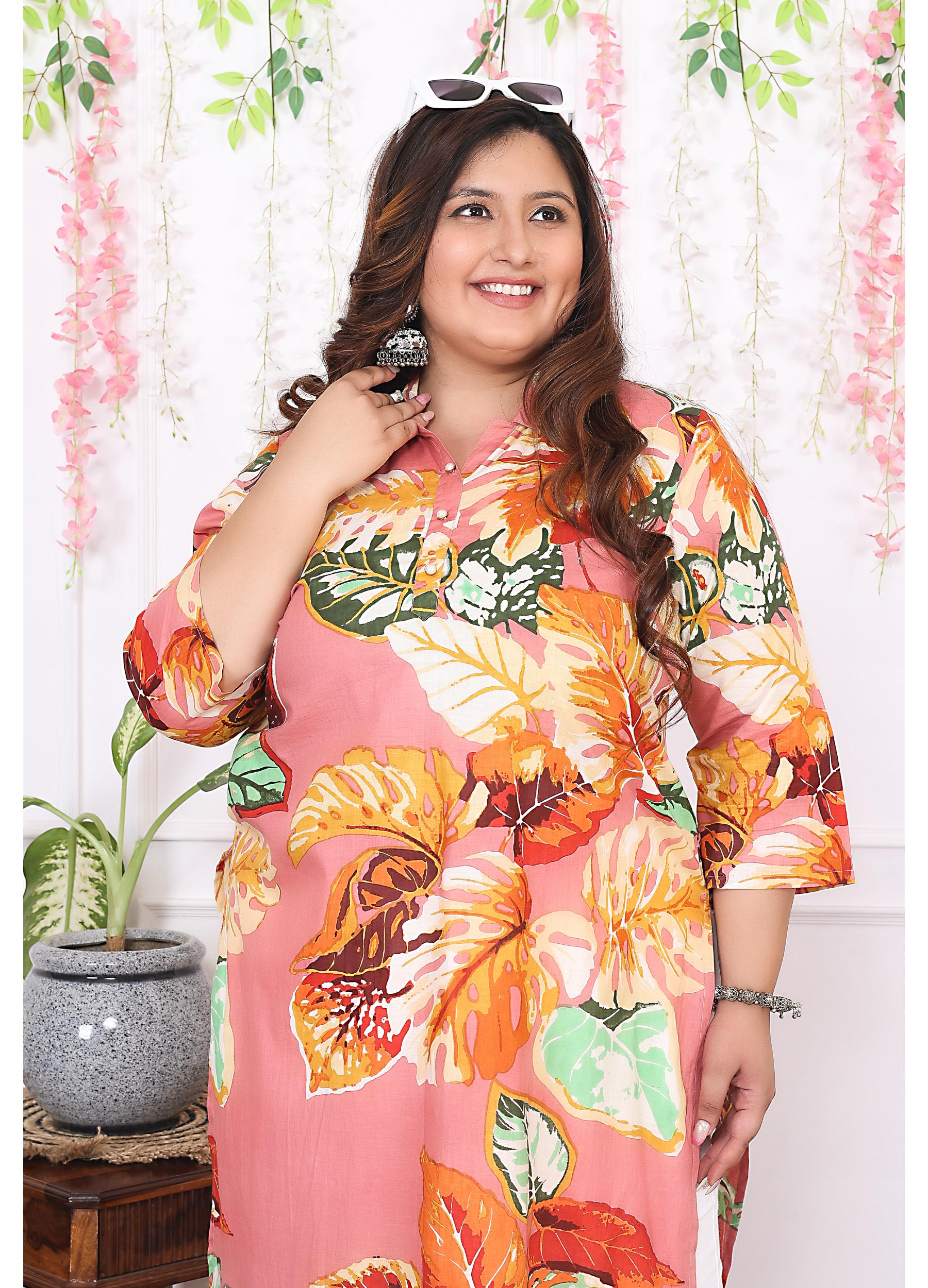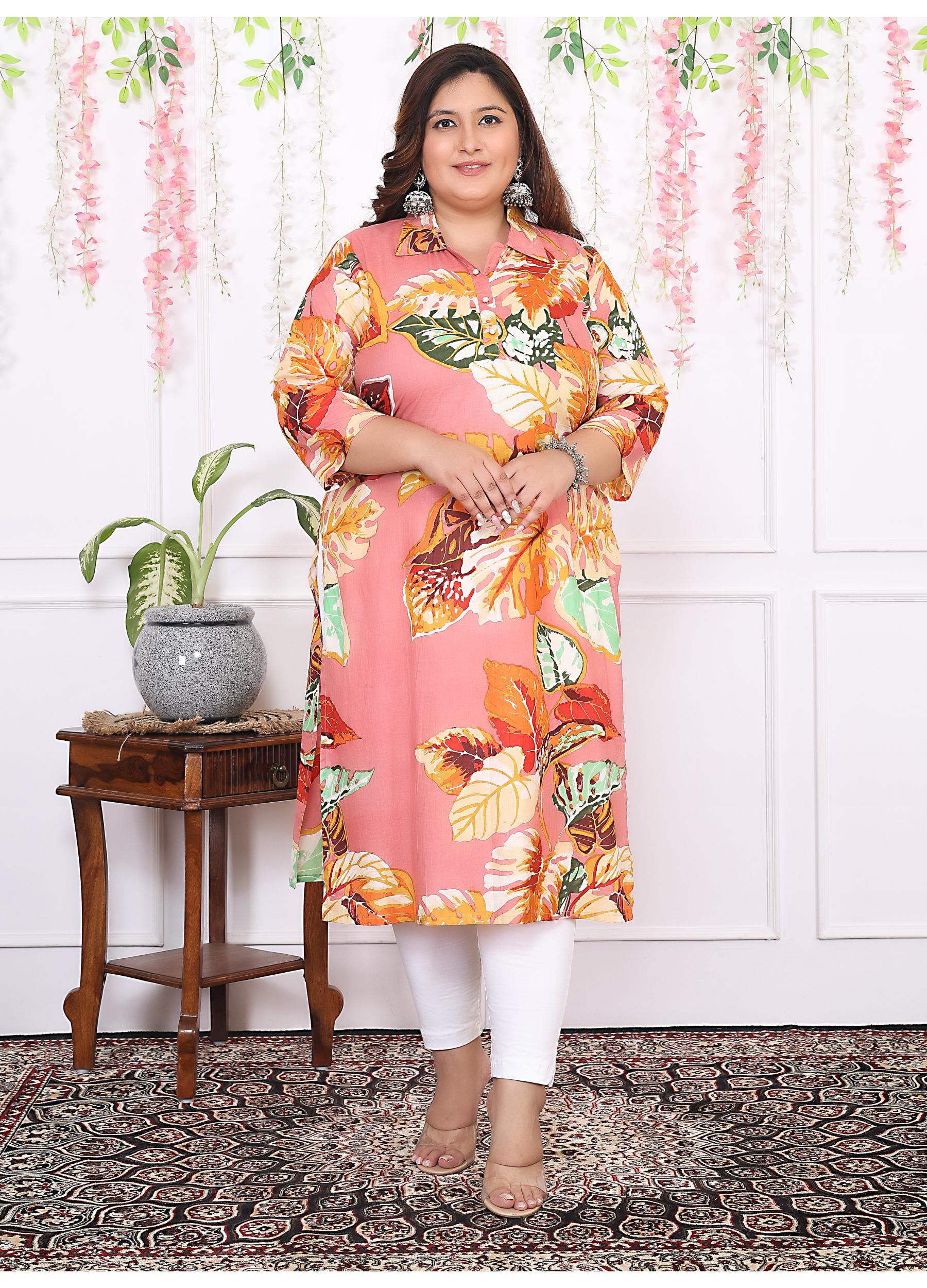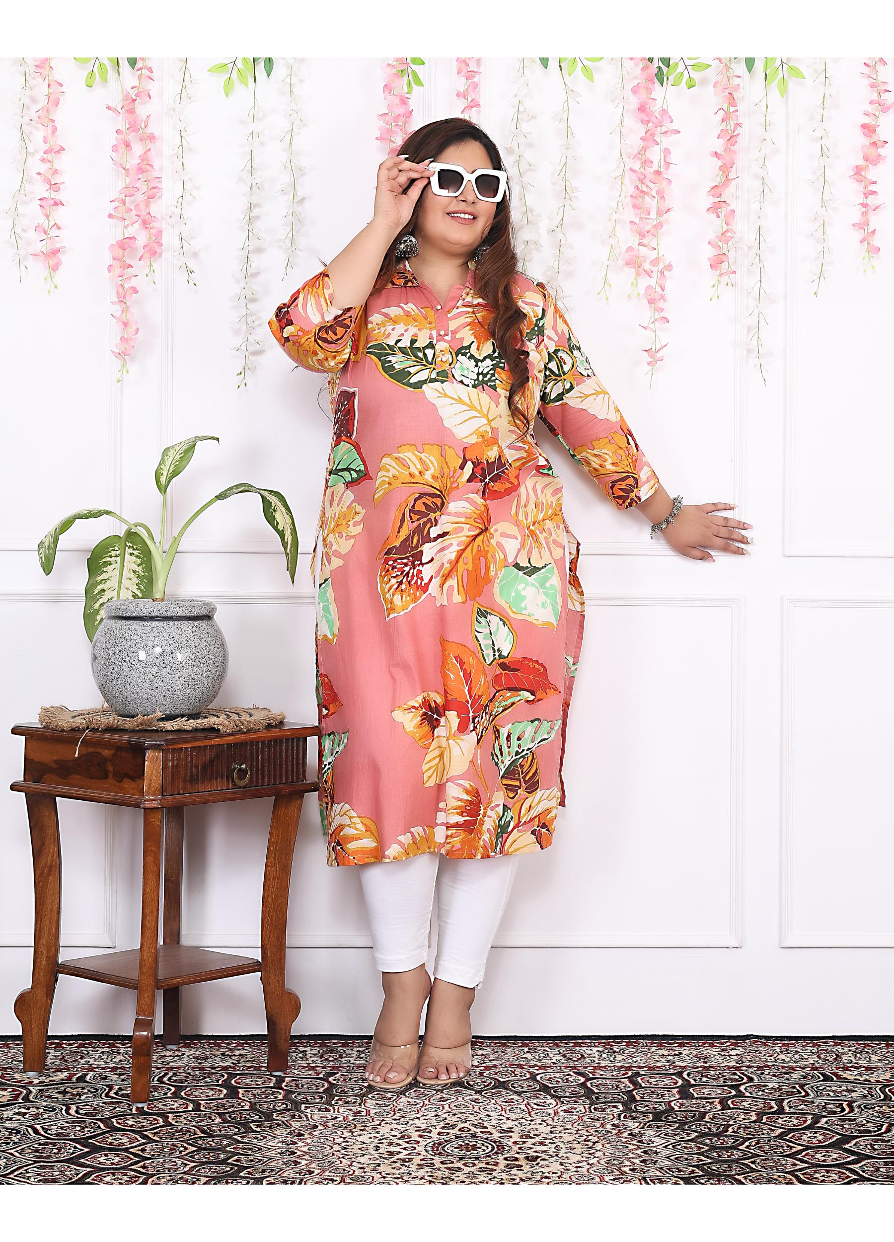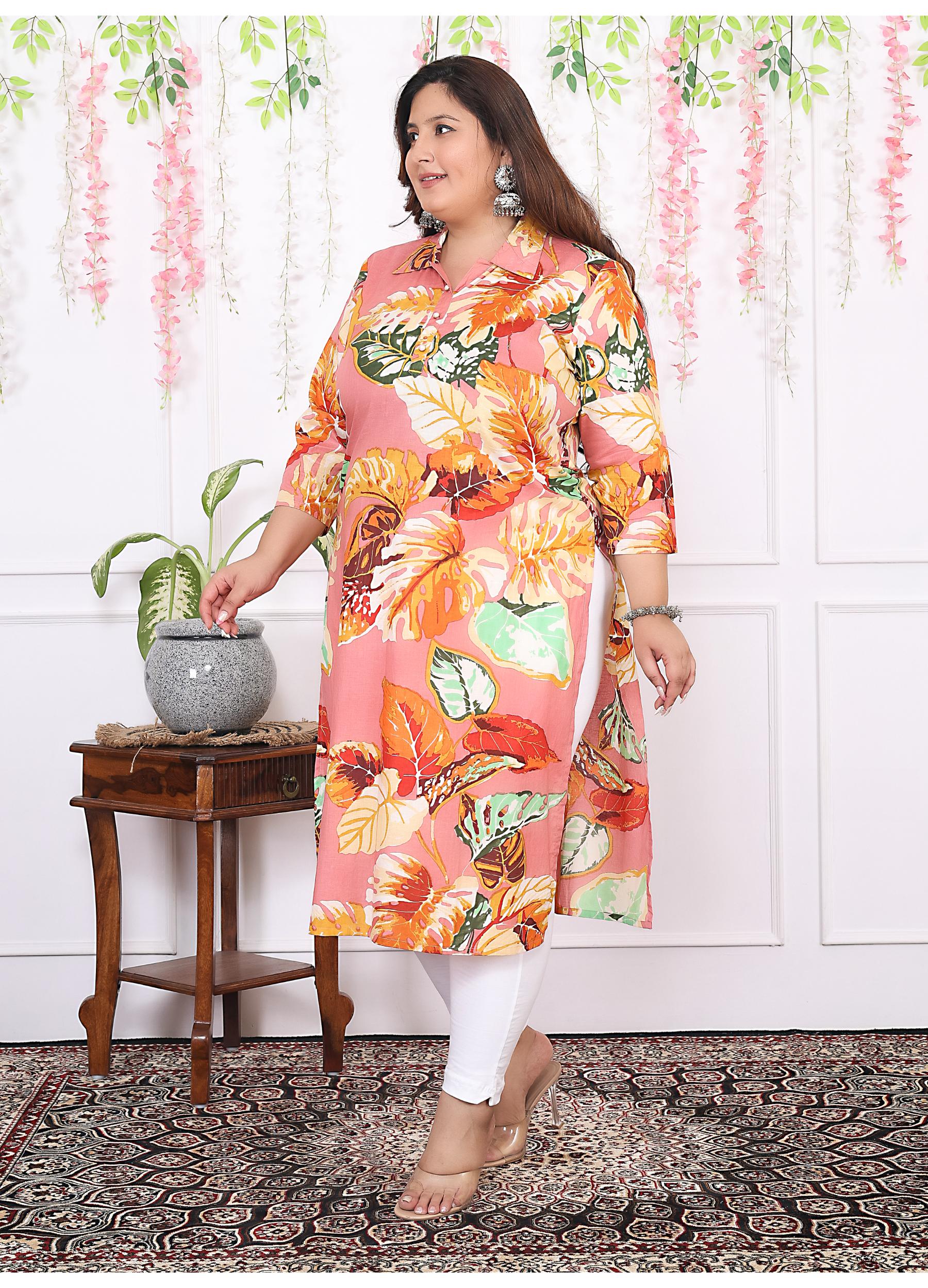 Women Printed Cotton Straight Kurta (B13-Peach)